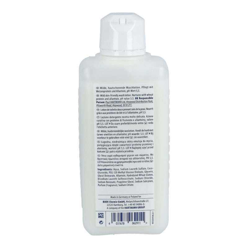 Milde Waschlotion zur Händereinigung beanspruchter Haut; ohne Farbstoffe.