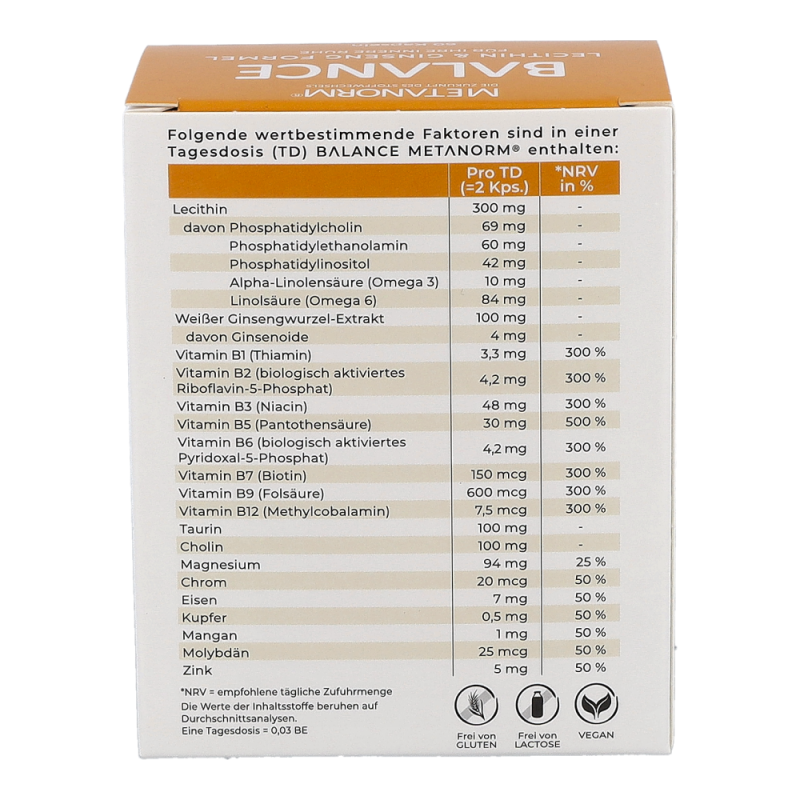 Folgende wertbestimmende Faktoren sind in einer Tagesdosis (TD) BALANCE METANORM® enthalten: