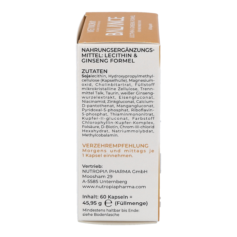 Ginsengwurzel, Lecithin, Pantothensäure und Zink unterstützen die geistige Ausgeglichenheit.