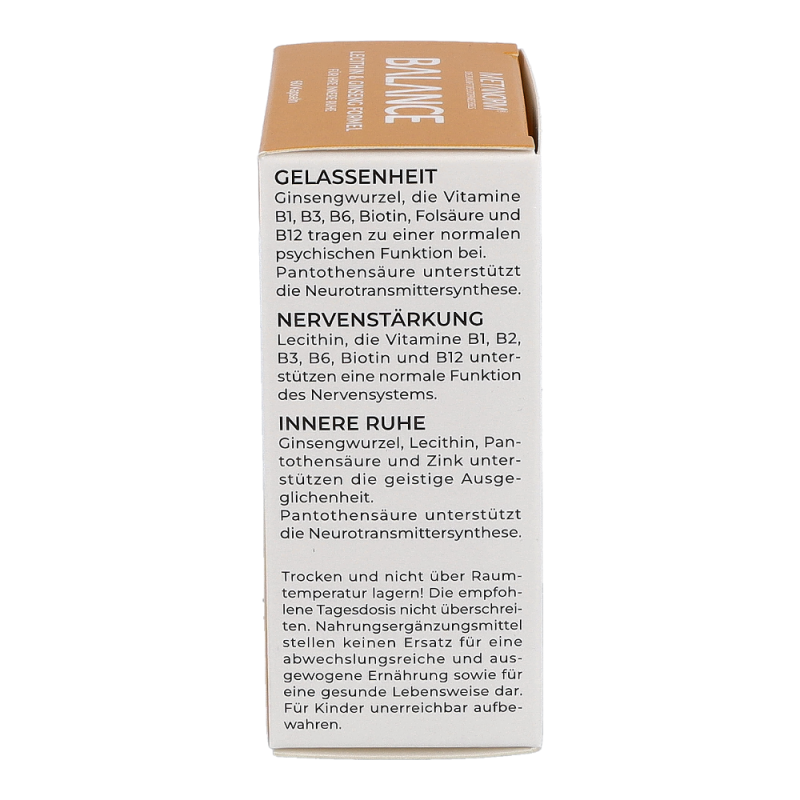 Lecithin, die Vitamine B1, B2, B3, B6, Biotin und B12 unterstützen eine normale Funktion des Nervensystems.