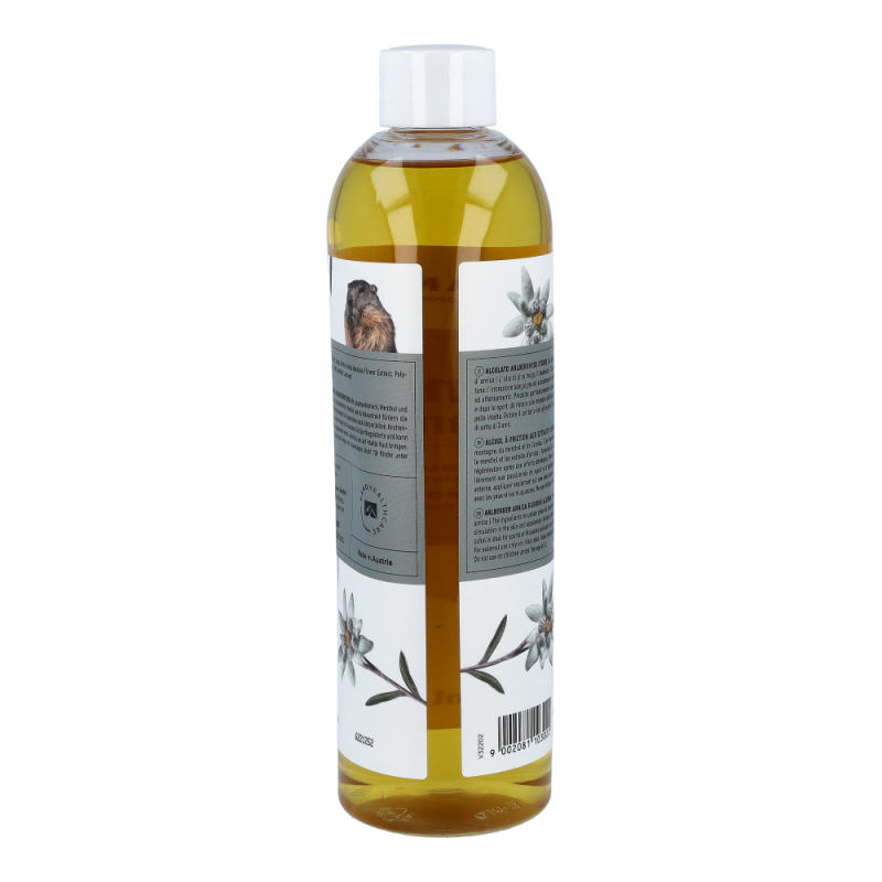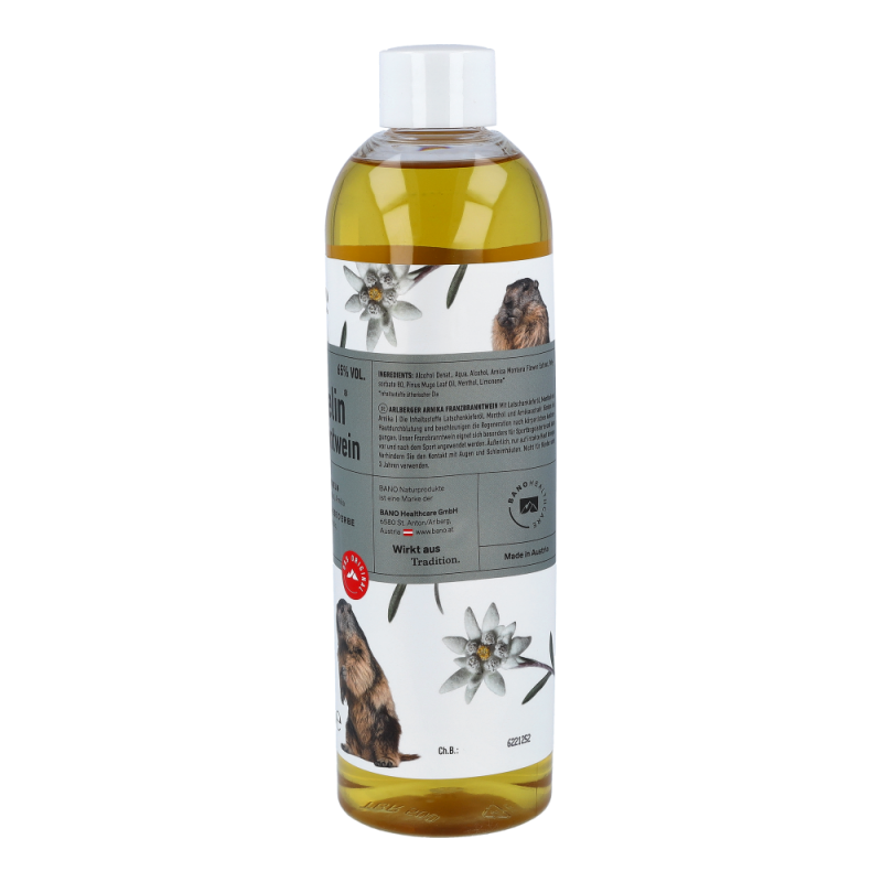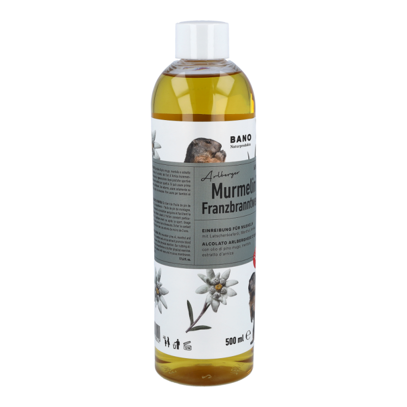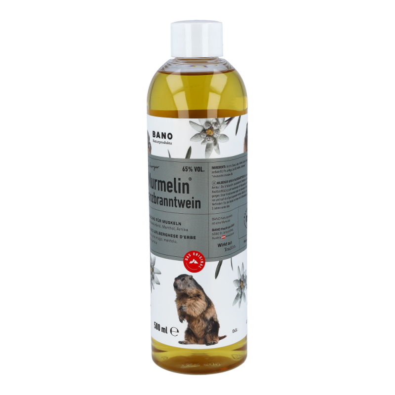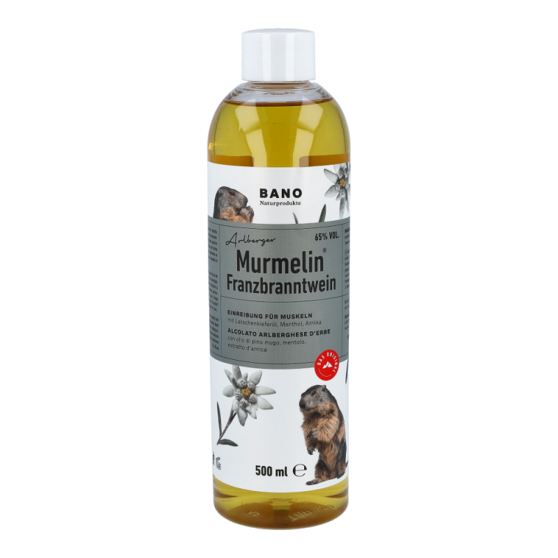 Murmelin Franzbranntwein ist ideal vor und nach Sport und körperlicher Betätigung, sowie bei Muskelkater oder einfach nur zum Kühlen schwerer Beine. Murmelin Franzbranntwein enthält neben 65% vol. Alkohol unter anderem Latschenkieferöl, Menthol und Arnikaextrakt.
