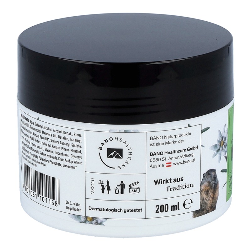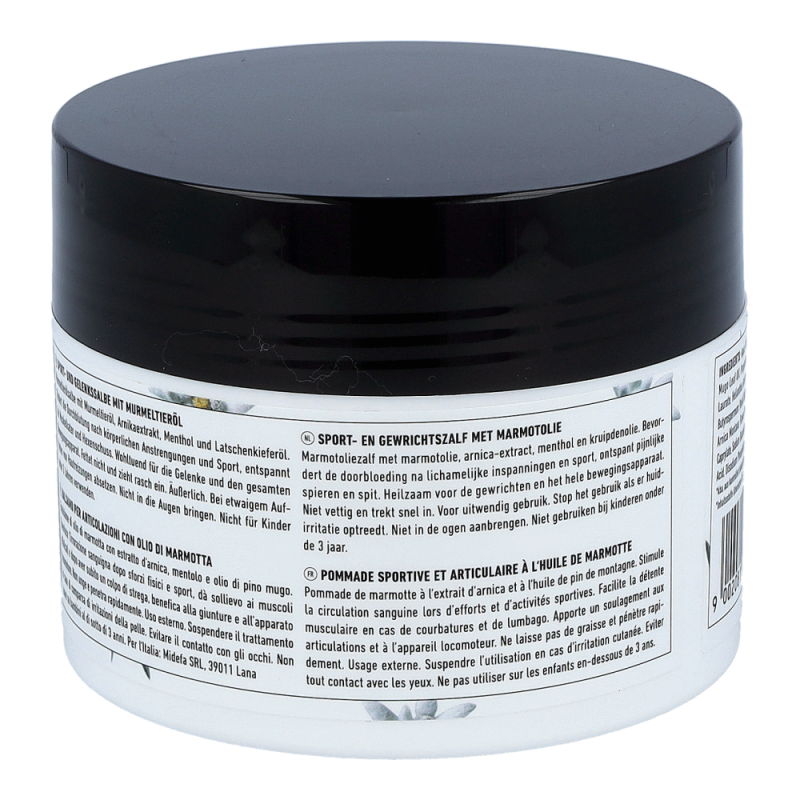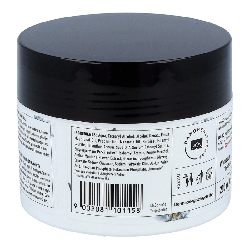 Die Inhaltsstoffe wie das wertvolle Murmeltieröl, echtes Arnikaextrakt, kühlendes Menthol sowie das herrlich riechende Latschenkiefernöl machen diese Sport- und Gelenksalbe zu einer natürlichen Lösung bei muskulären Verspannungen und wirken wohltuend auf den gesamten Bewegungsapparat.