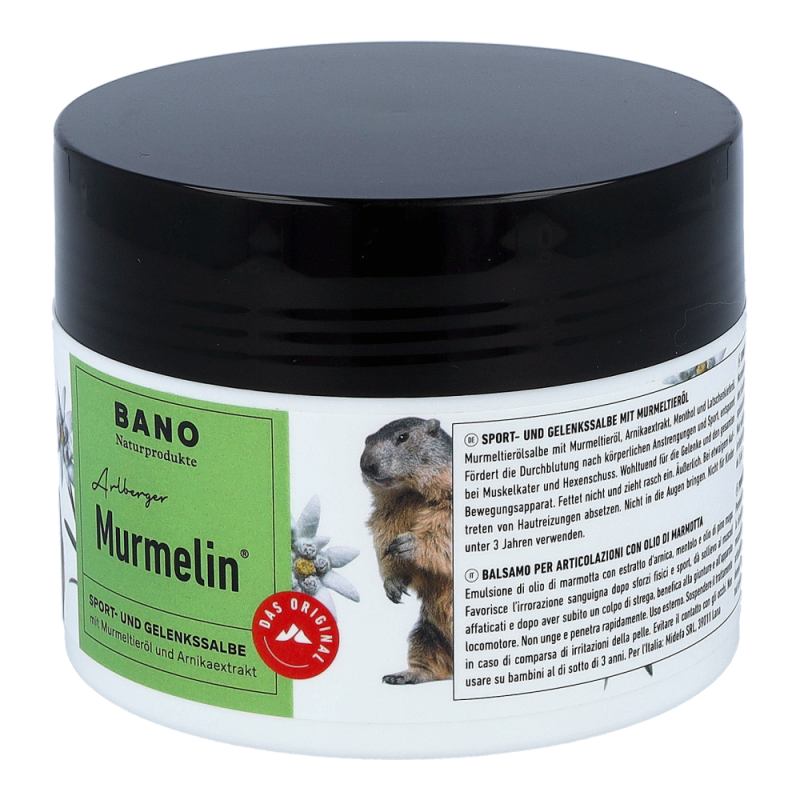 Murmelin Sport- und Gelenkssalbe fördert die Durchblutung nach körperlichen Anstrengungen und Sport und wirkt entspannend bei Muskelkater und Hexenschuß. Wohltuend auch für die Gelenke und den gesamten Bewegungsapparat.