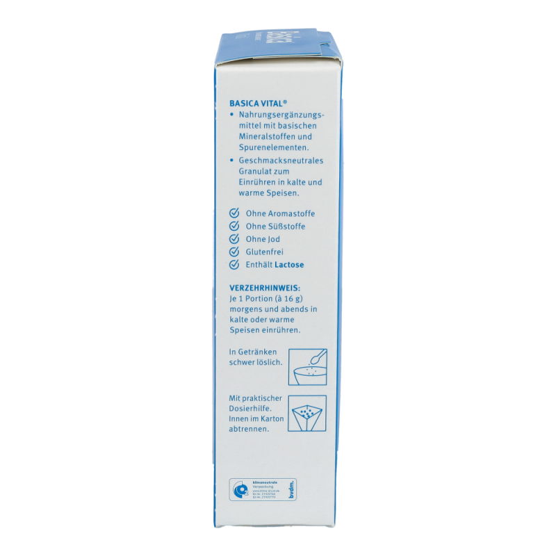 Basica Abs Original Vital Granulat ist zum Einrühren in Speisen, auch zum Kochen oder Backen geeignet. Das geschmacksneutrale und hitzebeständige Granulat enthält Lactose und ist zudem jodfrei, glutenfrei, sowie frei von Aroma- und Süßstoffen.