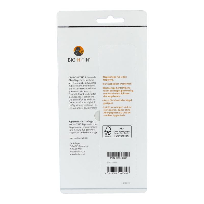 Bio-h-tin Feile Glas formt und glättet durch ihre microfeine gläserne Schleiffläche die Nägel besonders schonend und absolut gleichmäßig. So werden verblüffend glatte Nagelränder erreicht und das Splissen der Nagelkante verhindert.