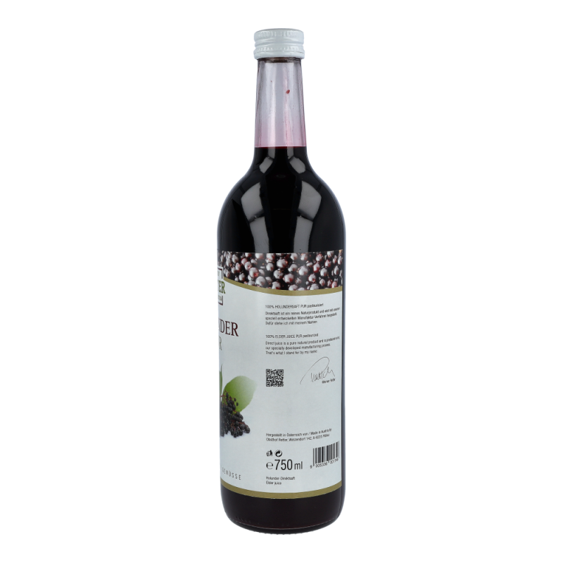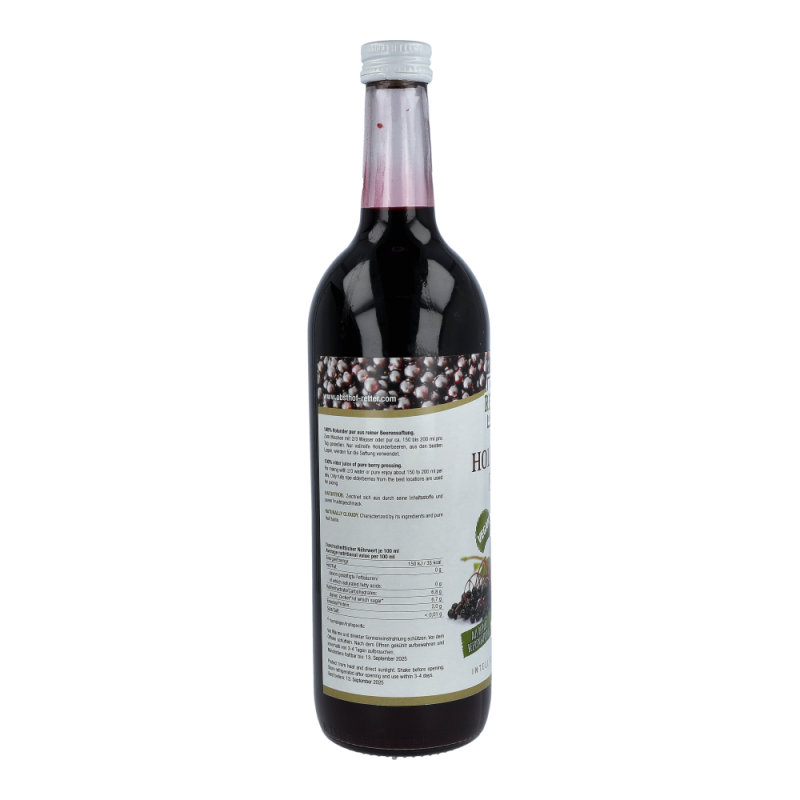 Der Holundersaft enthält neben seinen antioxidativen Wirkstoffen reichlich Vitamin C und B sowie Flavonoide.