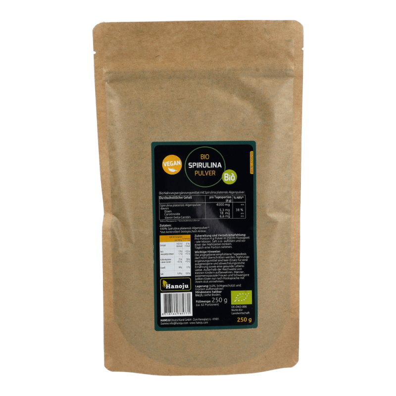 Zur Nahrungsergänzung dürfen täglich bis zu 4 g – 100% Bio Spirulina platensis Pulver eingenommen werden.