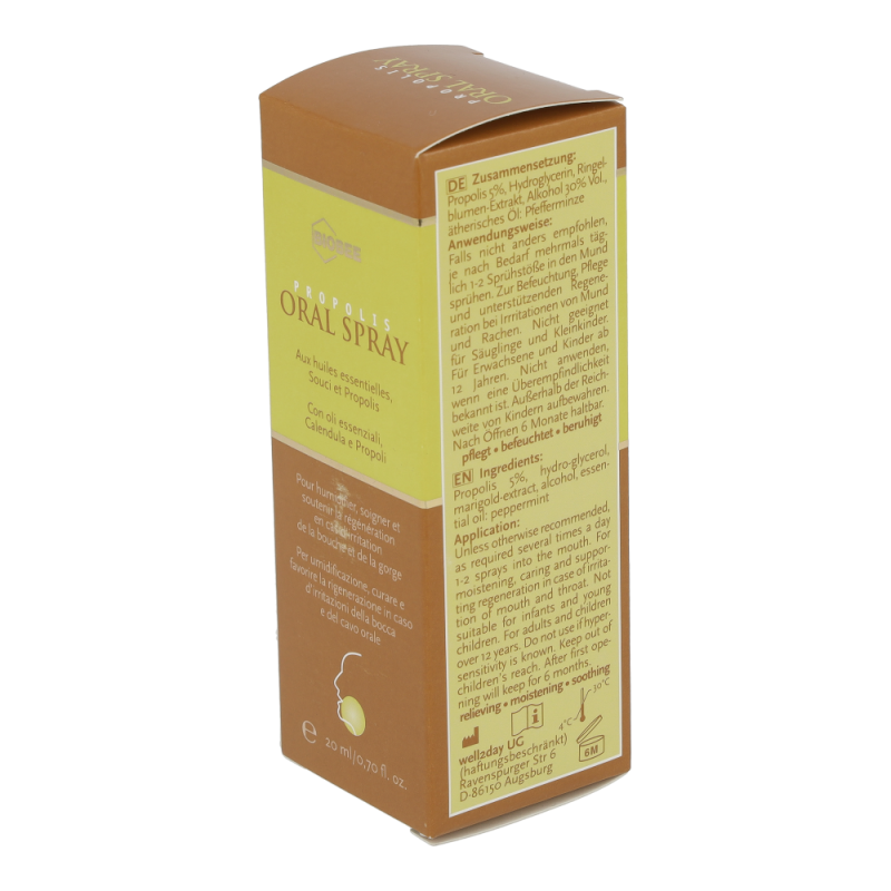 Der BIOBEE Propolis Oral Spray ist ein Naturprodukt, er ist vegetarisch, glutenfrei, laktosefrei, hefefrei, gelatinefrei.