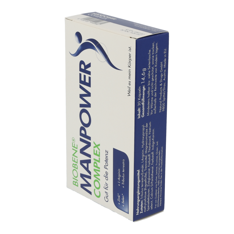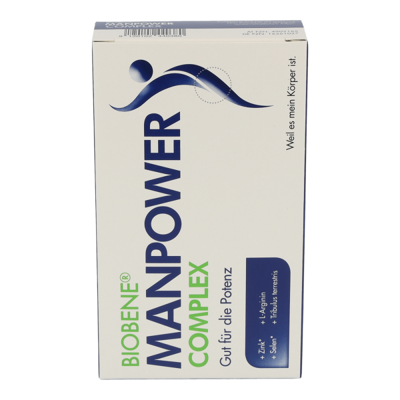 BIOBENE® Manpower Kapseln ist ein Nahrungsergänzungsmittel auf Basis wertvoller, sehr gut verträglicher, hochkonzentrierter Vitalstoffe, die von Experten kombiniert wurden: die Energie des Lebens, wenn man/Mann es braucht.BIOBENE® Manpower Complex enthält die Aminosäure L-Arginin und einen Pflanzenextrakt aus Tribulus terrestris.L-Arginin ist eine Aminosäure und enthält mit vier Stickstoffgruppen mehr Stickstoff (N) als alle anderen Aminosäuren. Daher kann der Körper nur aus L-Arginin das gefäßaktivierende Molekül NO (Stickoxid) bilden. Dieses Molekül NO regelt die Weitung der Gefäße und beeinflusst so die Durchblutung und den Blutdruck.Tribulus terrestris Extrakt wird aus den oberirdischen Pflanzenteilen der tropischen Frucht Erd-Burzeldorn (auch Dreispitz genannt) gewonnen und beinhaltet Saponine, die zu den Phytosterinen gehören. Die aus Indien stammende Pflanze besitzt reißnagelartige Dornen und wird seit jeher als Stärkungsmittel, zum Muskelaufbau und zur Steigerung der Libido eingesetzt..