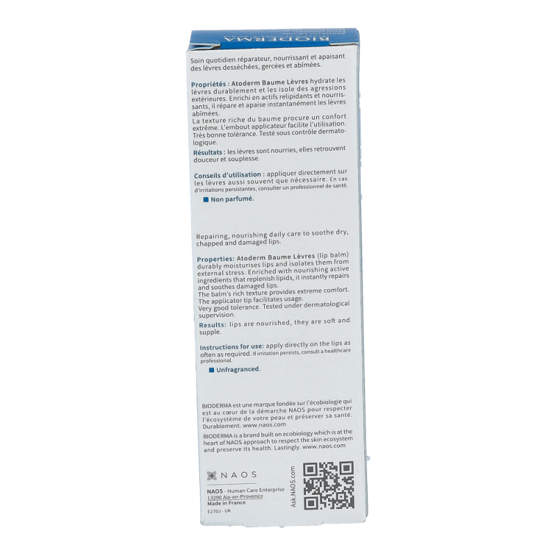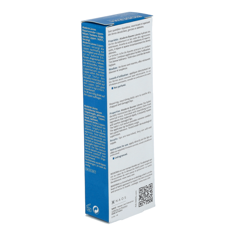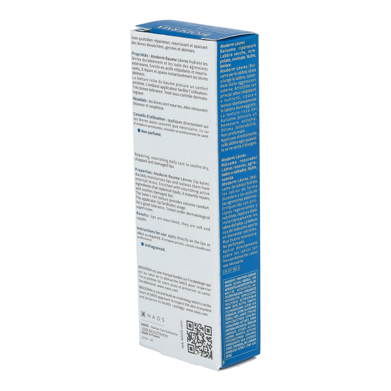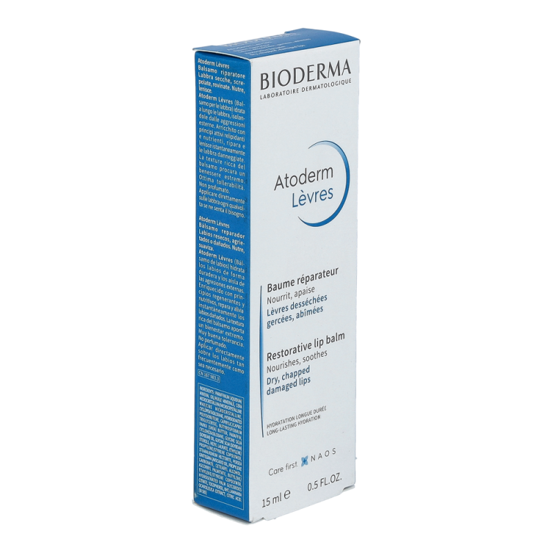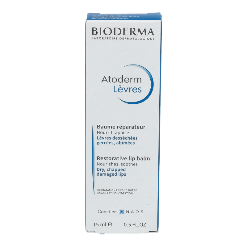 Bioderma Atoderm Lippenbalsam 15 ml zur Pflege trockener, rissiger Lippen. Zum Weichhalten von Rhagaden. Spendet sofort Feuchtigkeit und beruhigt spröde, brennende Lippen.