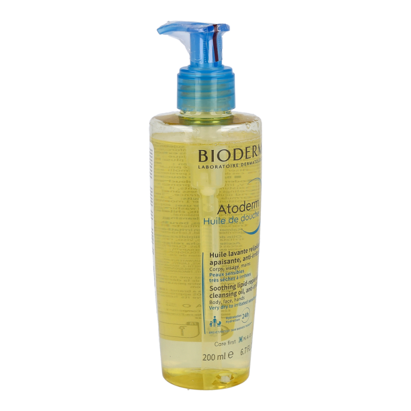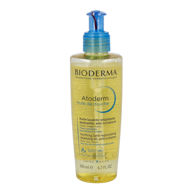 Bioderma Atoderm mildes Duschöl 200 ml für Gesicht und Körper. Speziell geeignet für (sehr) trockene und irritierte, sensible Haut. Für Säuglinge und Kleinkinder geeignet. Auch bei Neurodermitis.