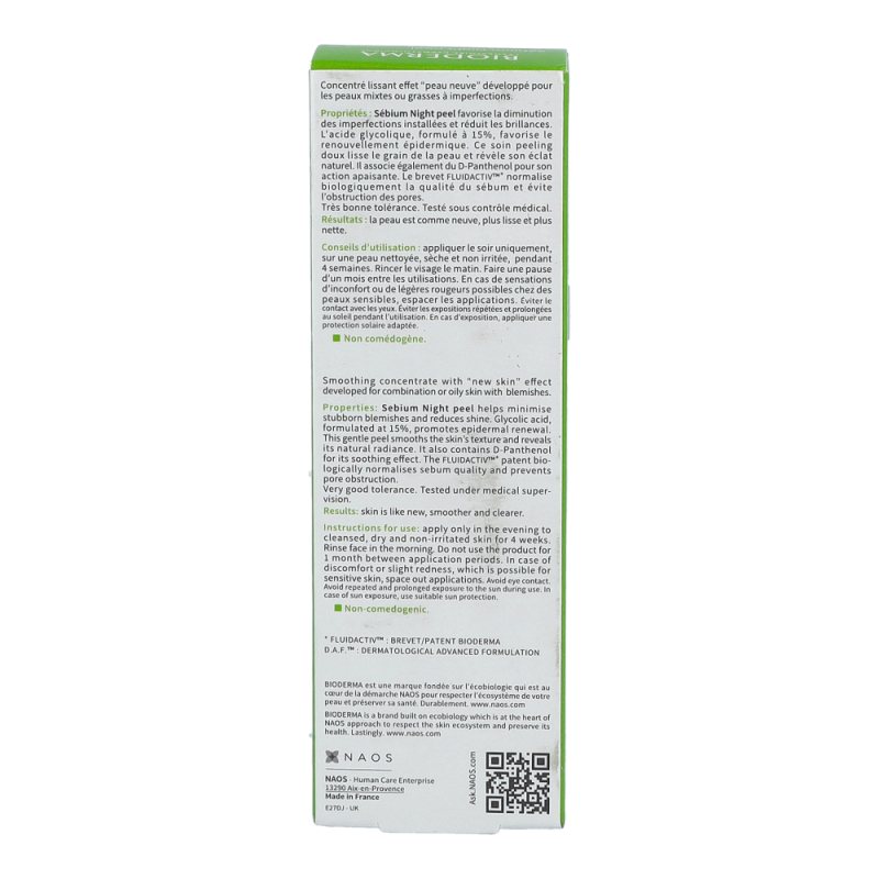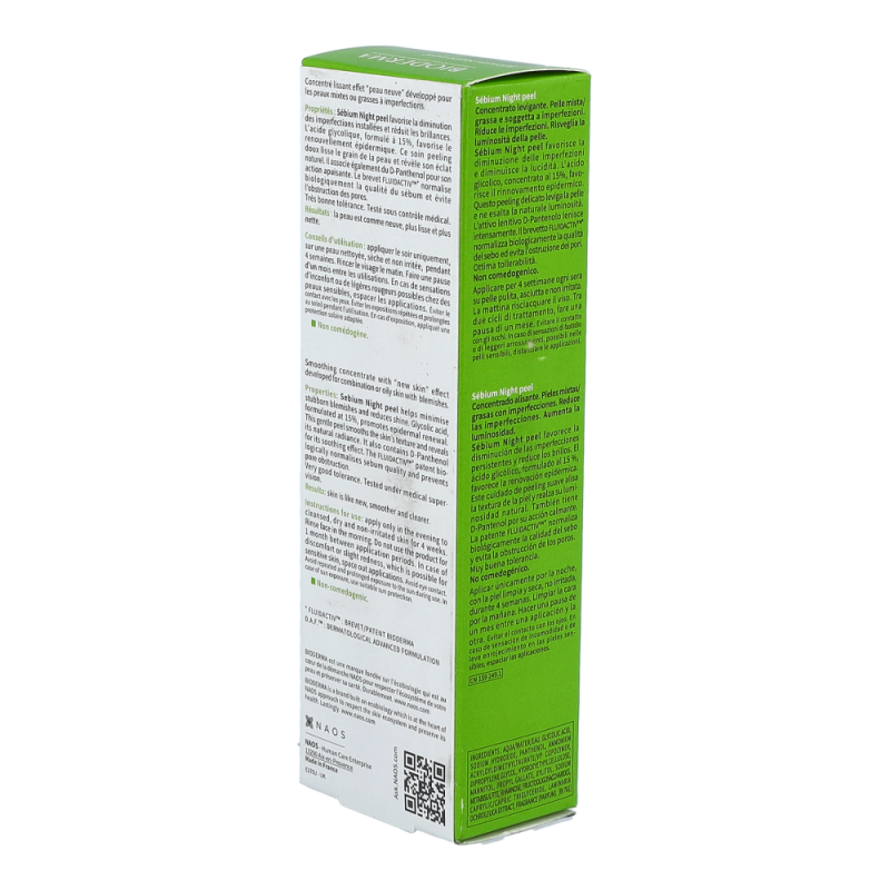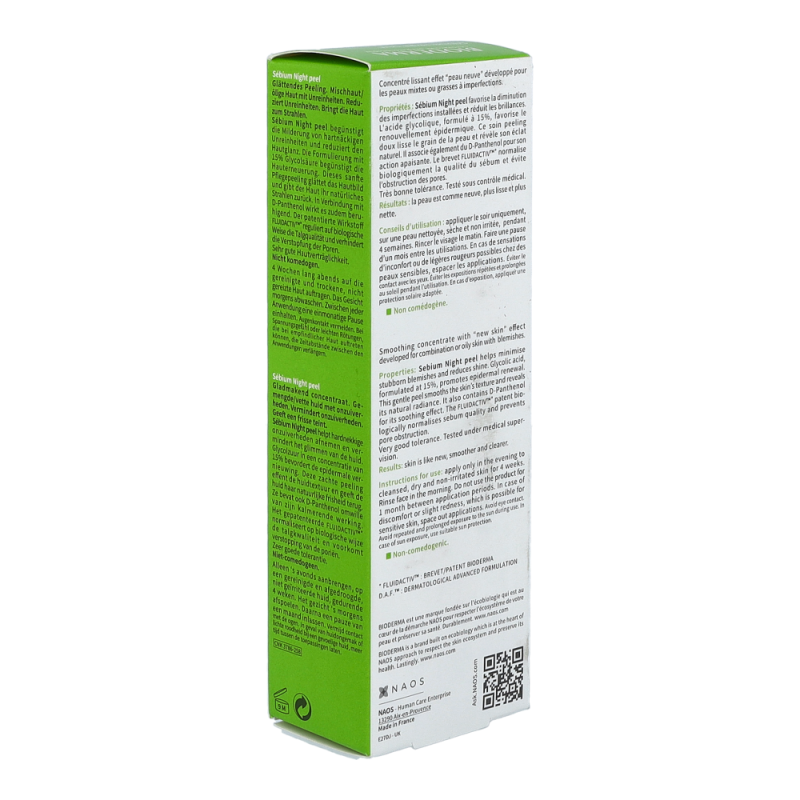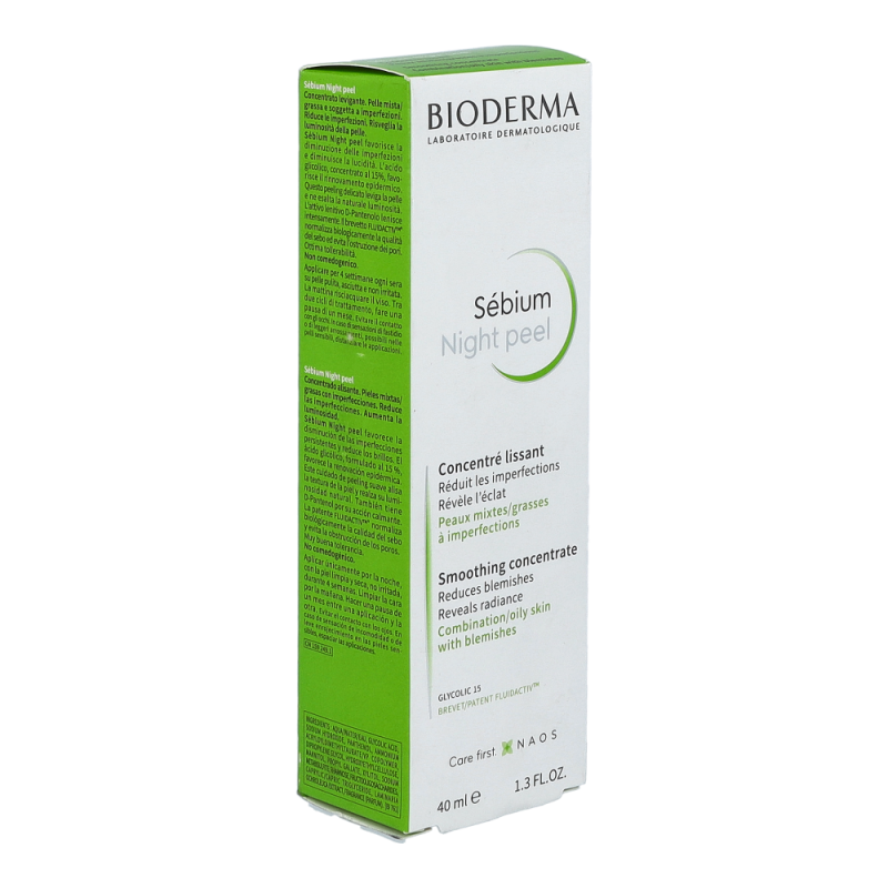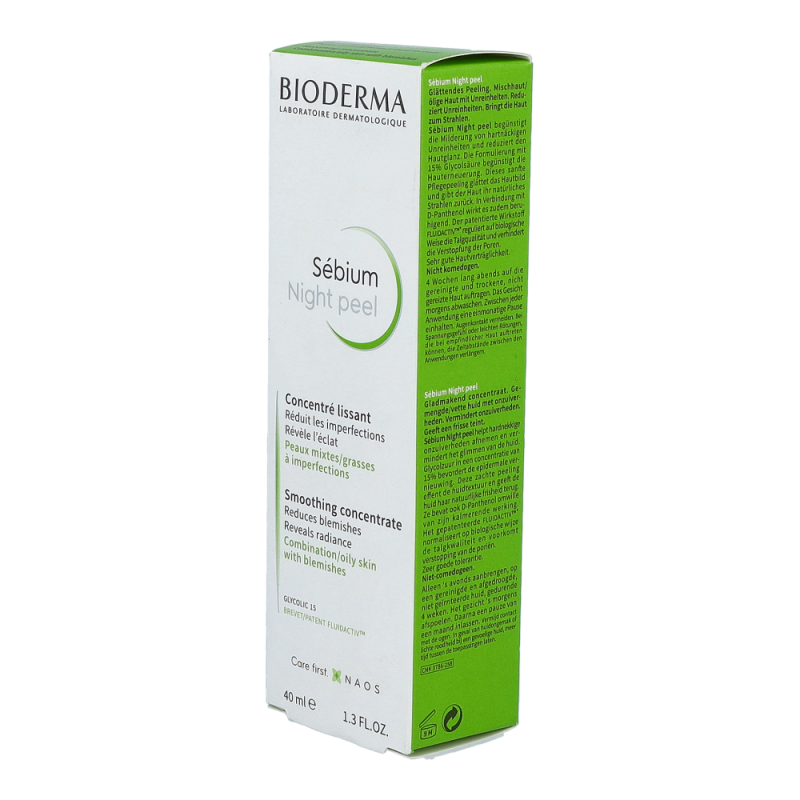 Bioderma Sébium Night Peel ist ein glättendes Konzentrat, das bei öliger Mischhaut, Pickelmalen und Unreinheiten (auch bei Spätakne) zur Verbesserung des Hautbildes beiträgt.