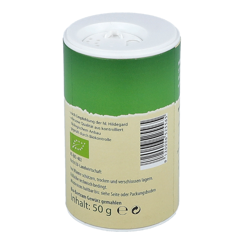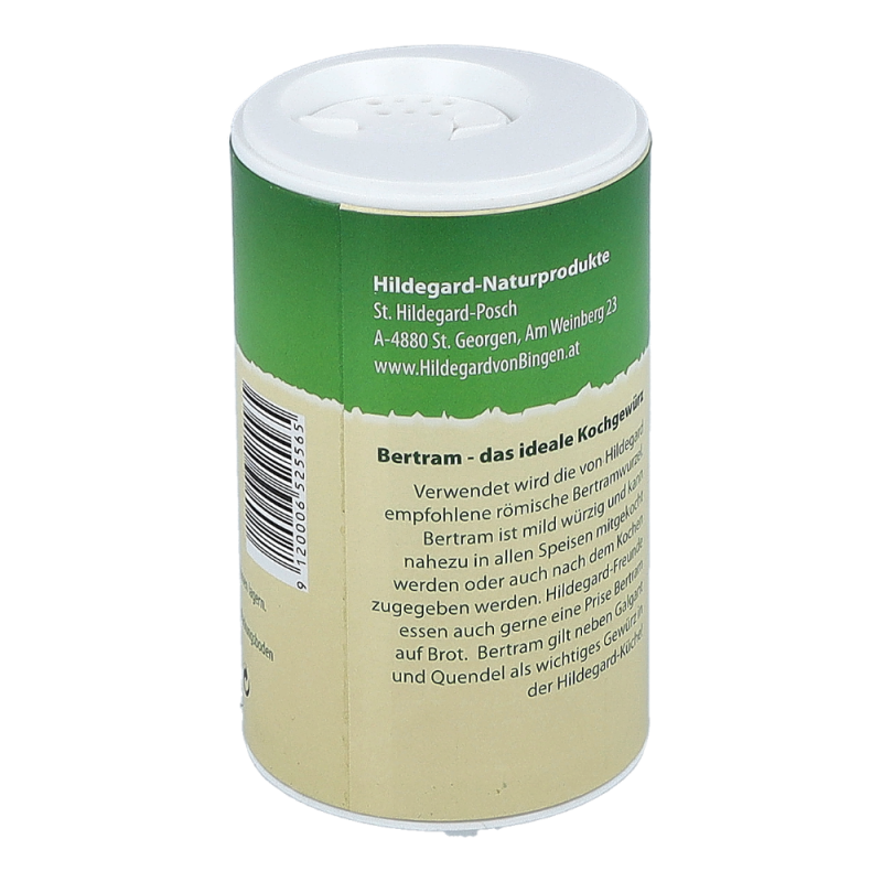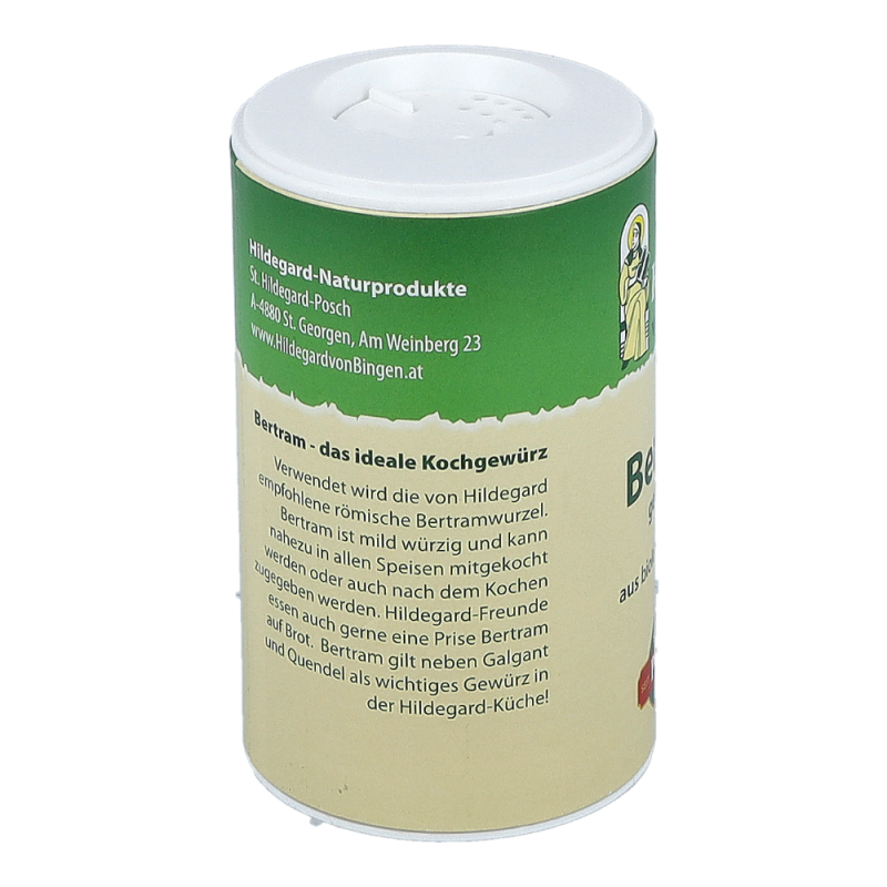 Biofit Hildegard Bertram gemahlen stärkt das Wohlbefinden. Die römische Bertramwurzel ist seit Jahrhunderten ein unverzichtbares und wertvolles Küchengewürz. Vielen Menschen fehlt heute oftmals die Zeit, um selber zu kochen. Um dem Körper dennoch Bertram zuführen zu können, empfehlen wir zu diesem Mittel.