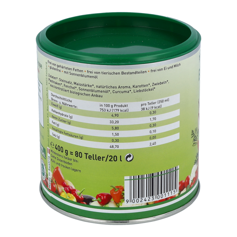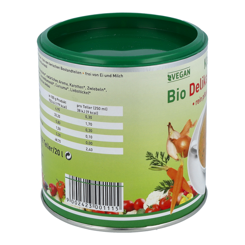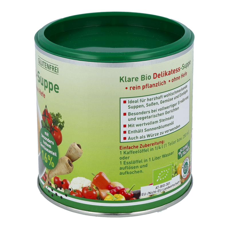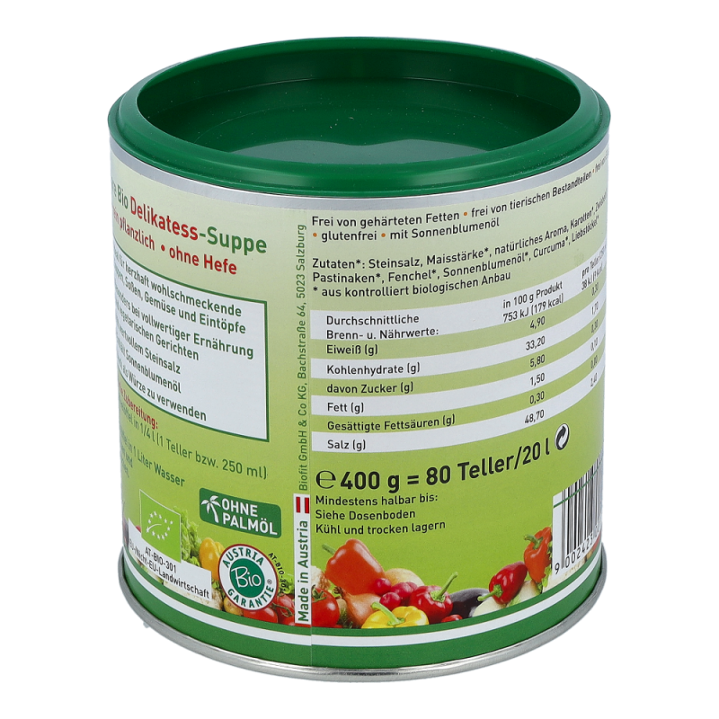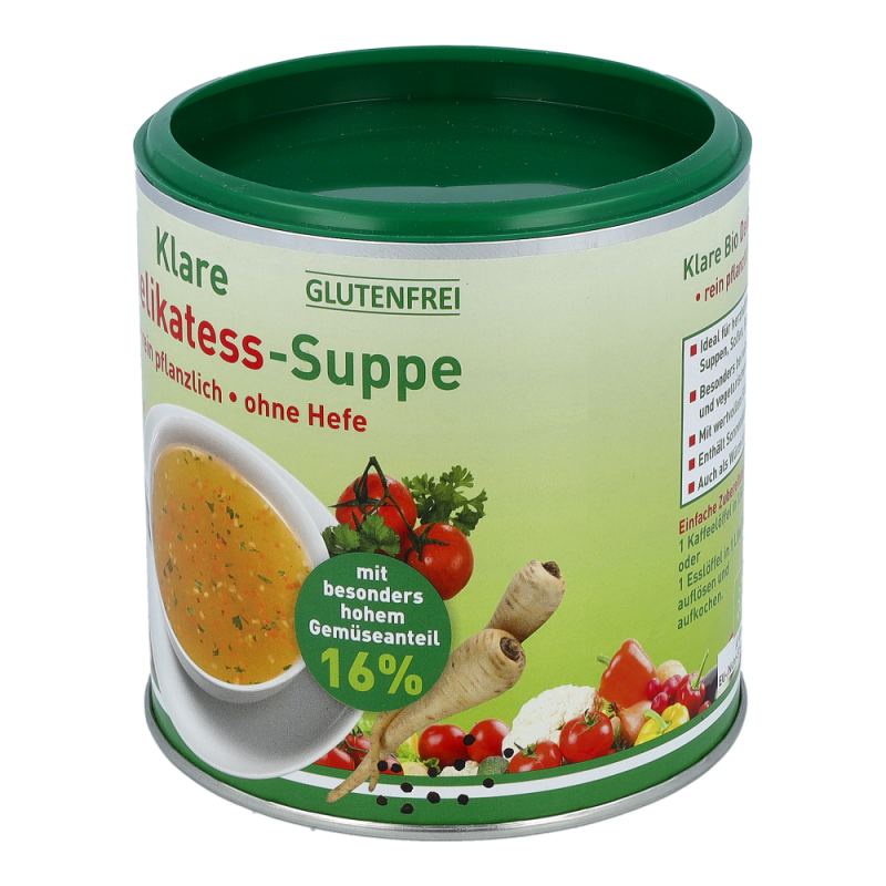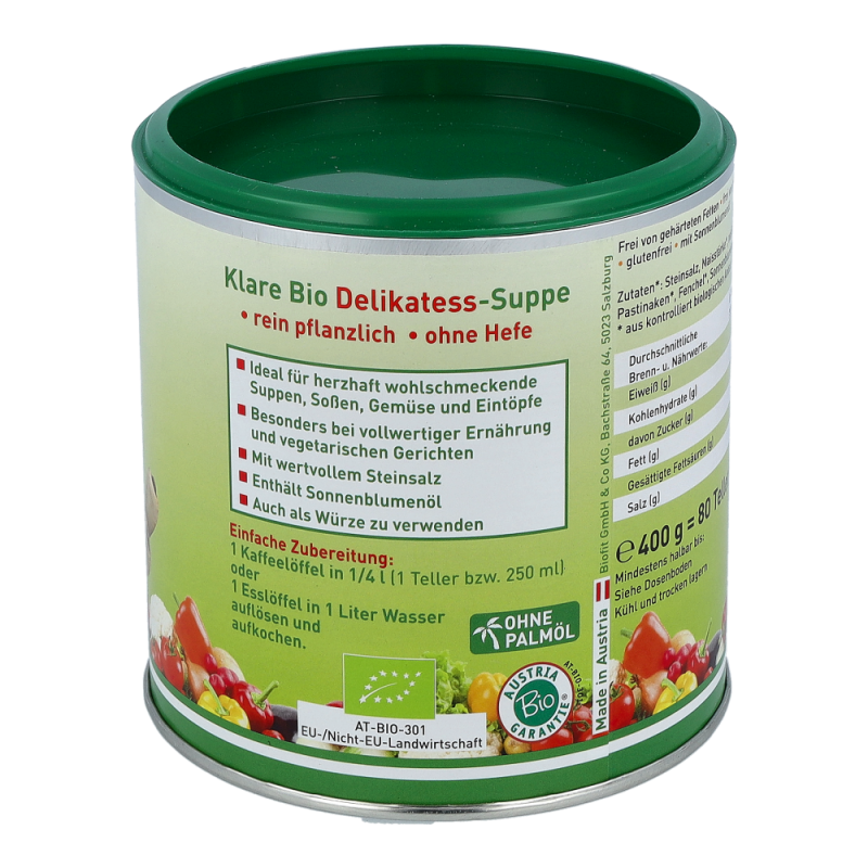 Biofit Hildegard Delikatess Suppe Bio 400 g ist ein wahrer Küchenklassiker. Er bildet eine gesunde Basis für hausgemachte Suppen oder eine kleine Zwischenmahlzeit. Auch geeignet zum Würzen oder Verfeinern. Für Veganer geeignet.