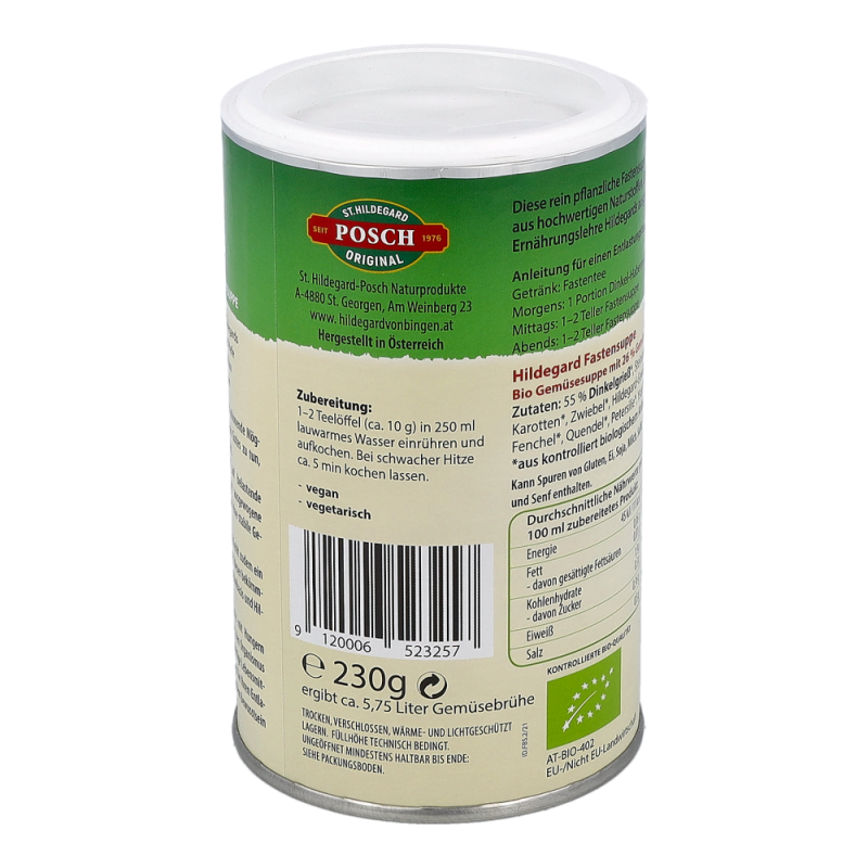 Biofit Hildegard Fastensuppe dient als wertvolle Ergänzung beim Heilfasten. Heilfasten ist jedoch etwas völlig anderes als Hungern. Beim richtig durchgeführten Heilfasten entsteht nämlich kein Hungergefühl. Die Fastensuppe nach Hildegard gibt ein gutes Sättigungsgefühl und führt zu einem kräftigen Energie-Schwung.