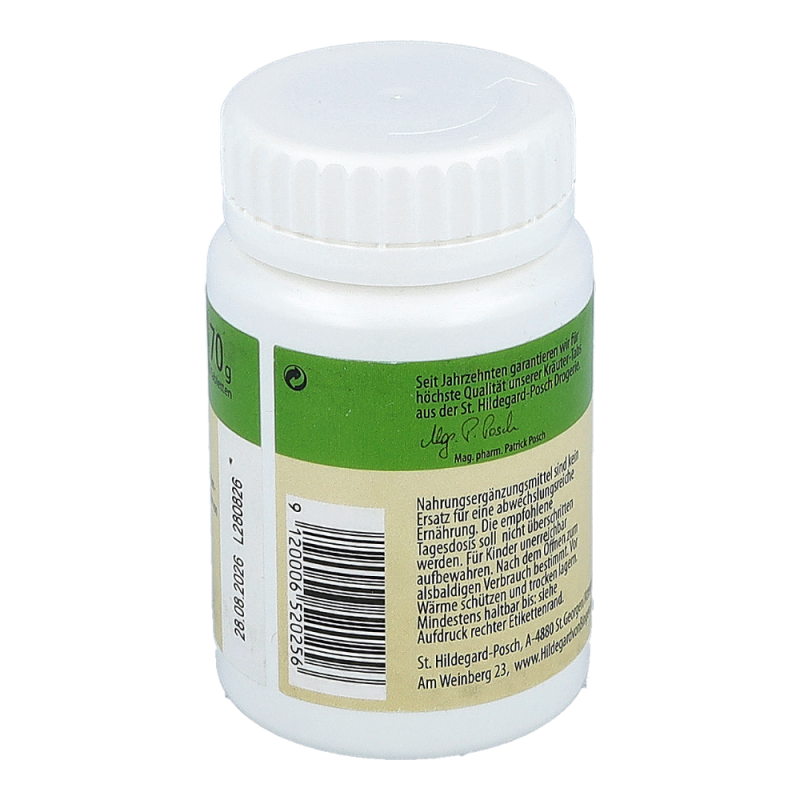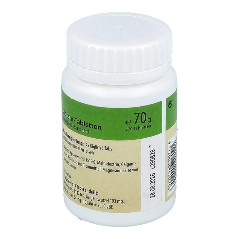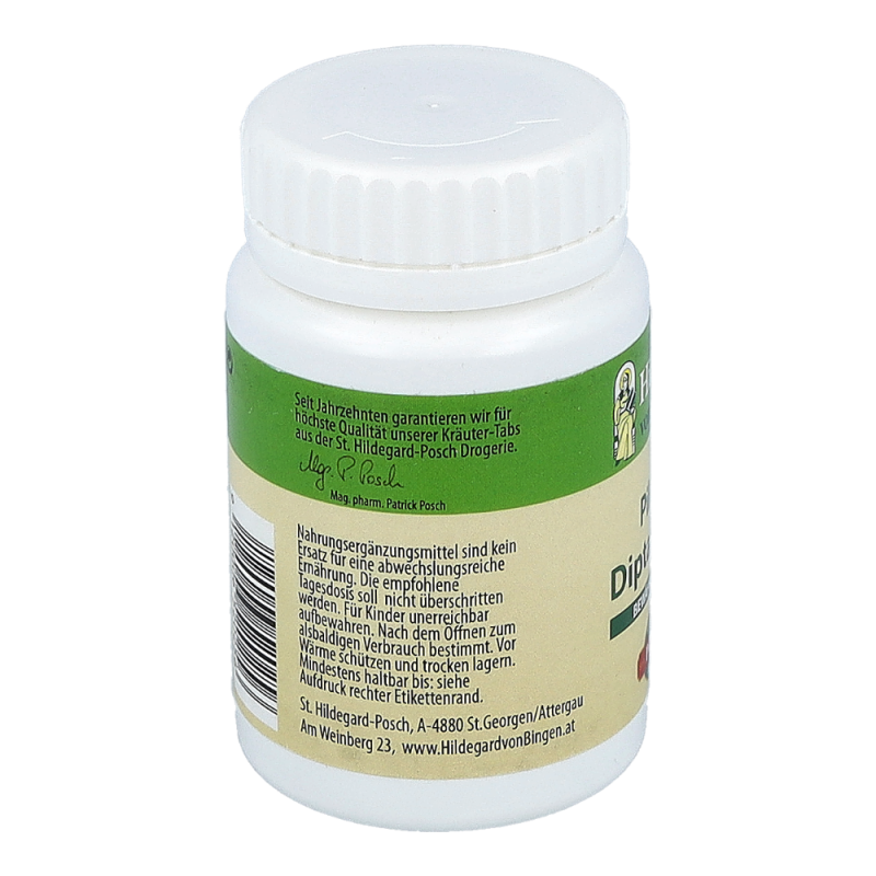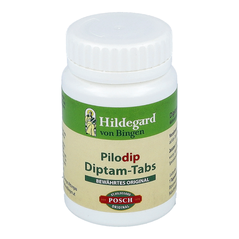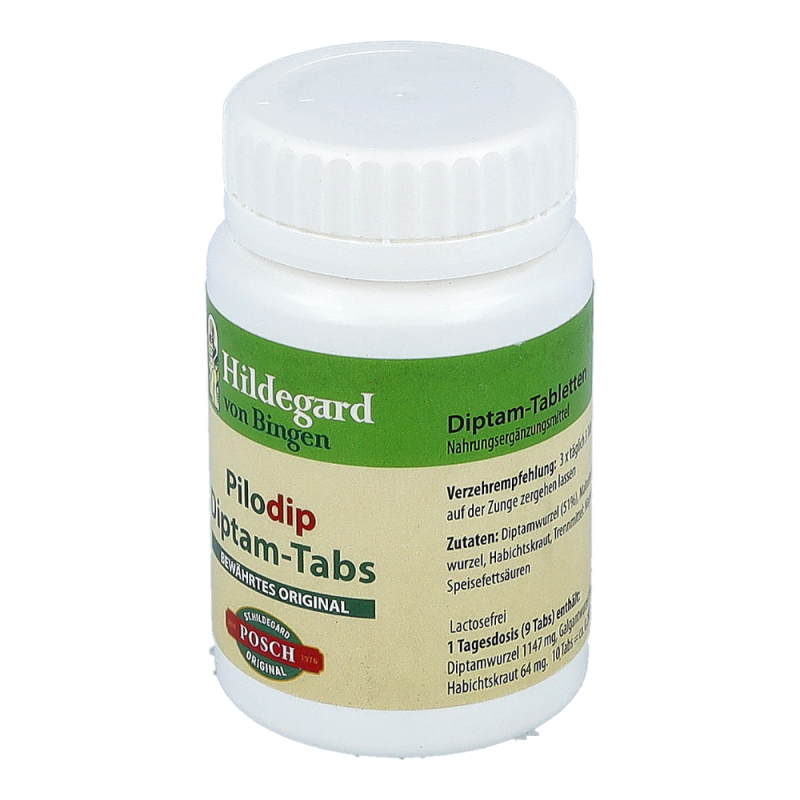 Biofit Hildegard Pilodip Diptam Tabs enthalten als Hauptinhaltstoff die Diptamwurzel, zusätzlich etwas Galgantwurzel und ein wenig Habichtskraut. Der leicht bittere Geschmack der Pilodip-Tabs geht auf die Bitterstoffe in der Diptamwurzel zurück. Zur Nahrungsergänzung nach Hildegard von Bingen empfohlen