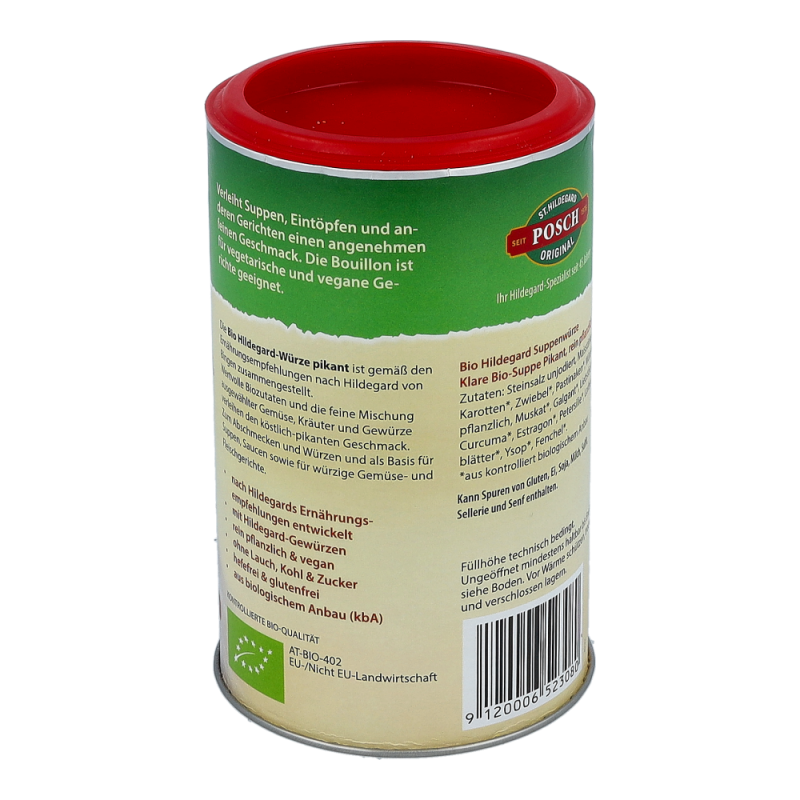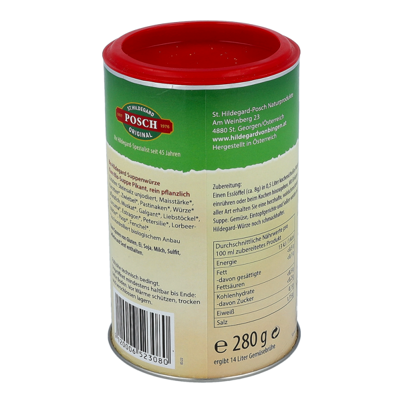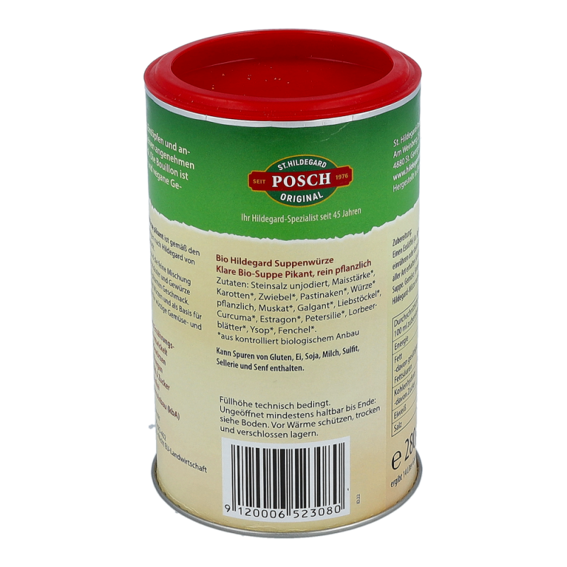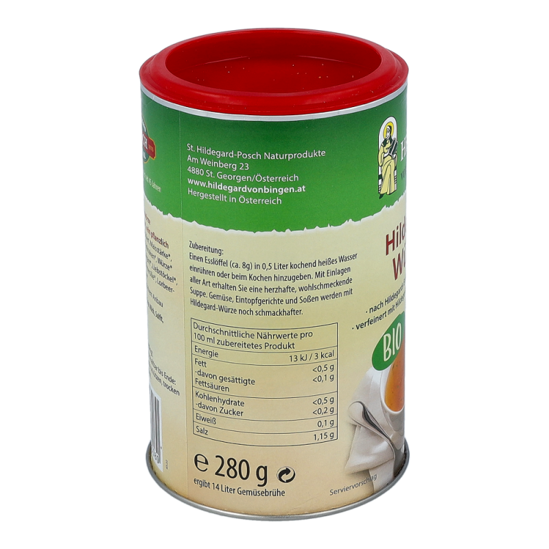 Biofit Hildegard Suppe Pikant Bio ist eine rein pflanzliche Art des Suppenpulvers. Mit Einlagen aller Art erhalten Sie eine herzhafte, wohlschmeckende Suppe. Gemüse, Eintopfgerichte, Soßen und Salate werden mit der Hildegard Suppe Pikant schmackhafter.