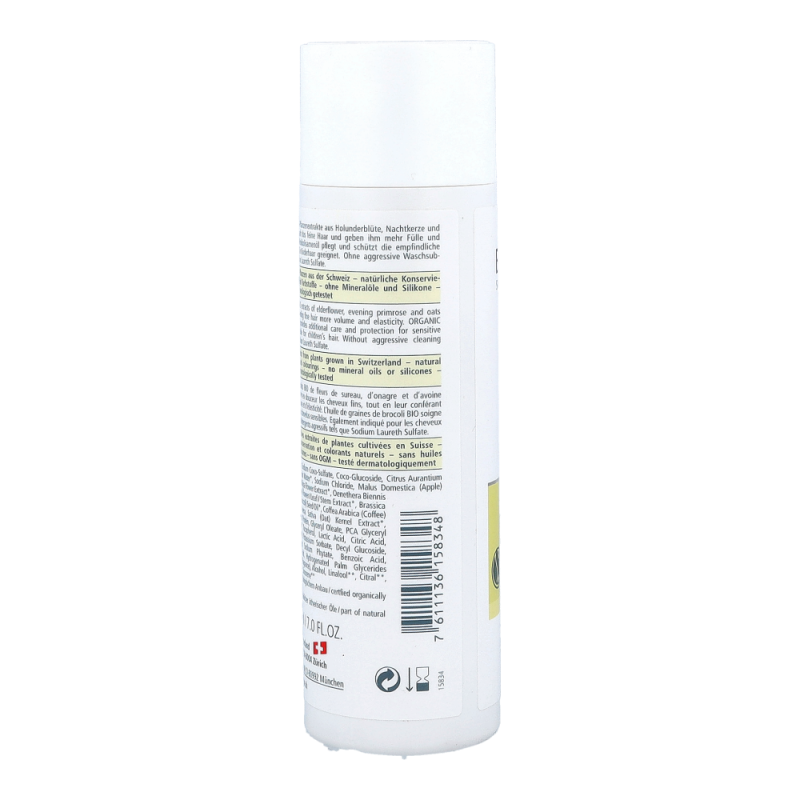 Biokosma Shampoo Volume & Shine Hollerblüten reinigt mit Hilfe hochwertiger Pflanzenextrakte aus Holunderblüten, Nachtkerzen und Hafer sanft das feine Haar und gibt ihm mehr Fülle und Spannkraft. Broccolisamenöl pflegt und schützt die empfindliche Kopfhaut. Auch für Kinderhaar geeignet.