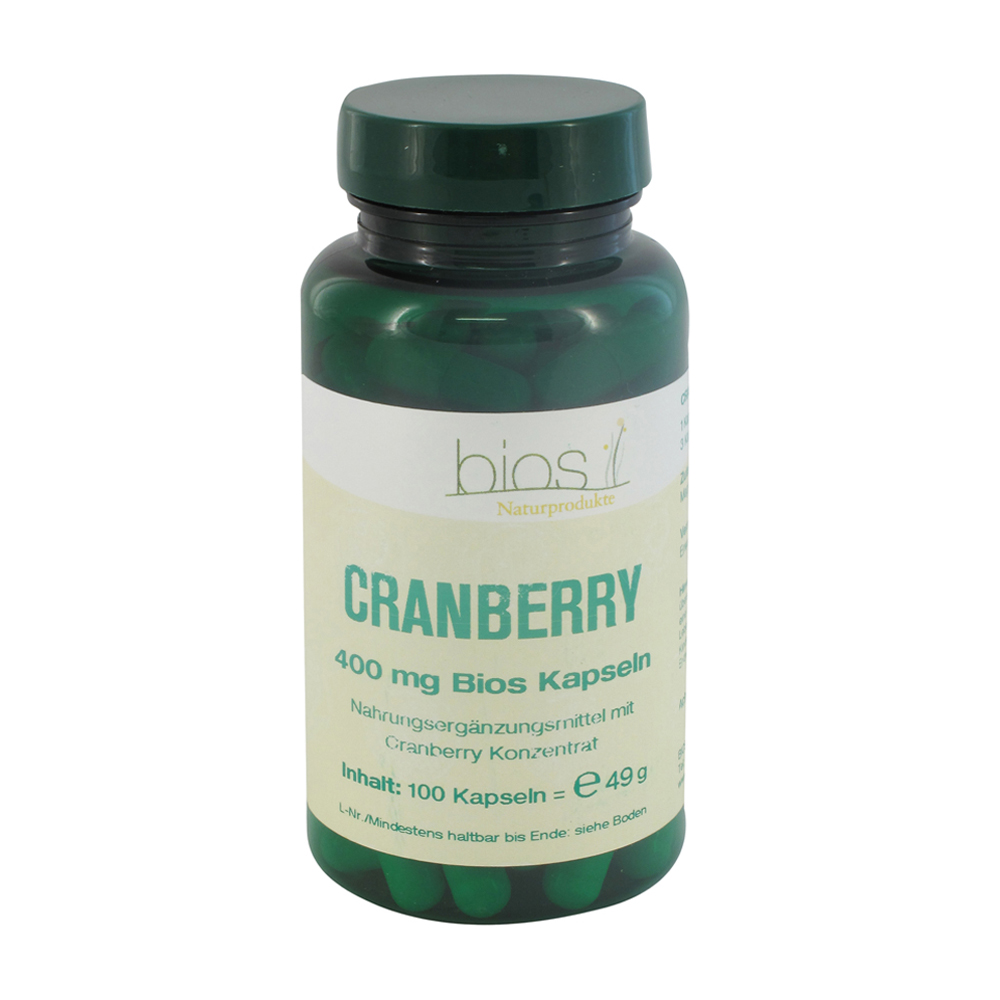 Bios Cranberry 400 mg Kapseln enthalten 400 mg Cranberry Fruchtkonzentrat in einer Hartgelatinekapsel. Die Preiselbeere gehört zu den Heidekrautgewächsen. Die reifen Früchte schmecken roh säuerlich-herb, können zu Marmeladen, Fruchtmusen, Kompott oder Saft verarbeitet werden und enthalten viel Vitamin C, etwas Vitamin A sowie Fruchtsäuren und Gerbstoffe.