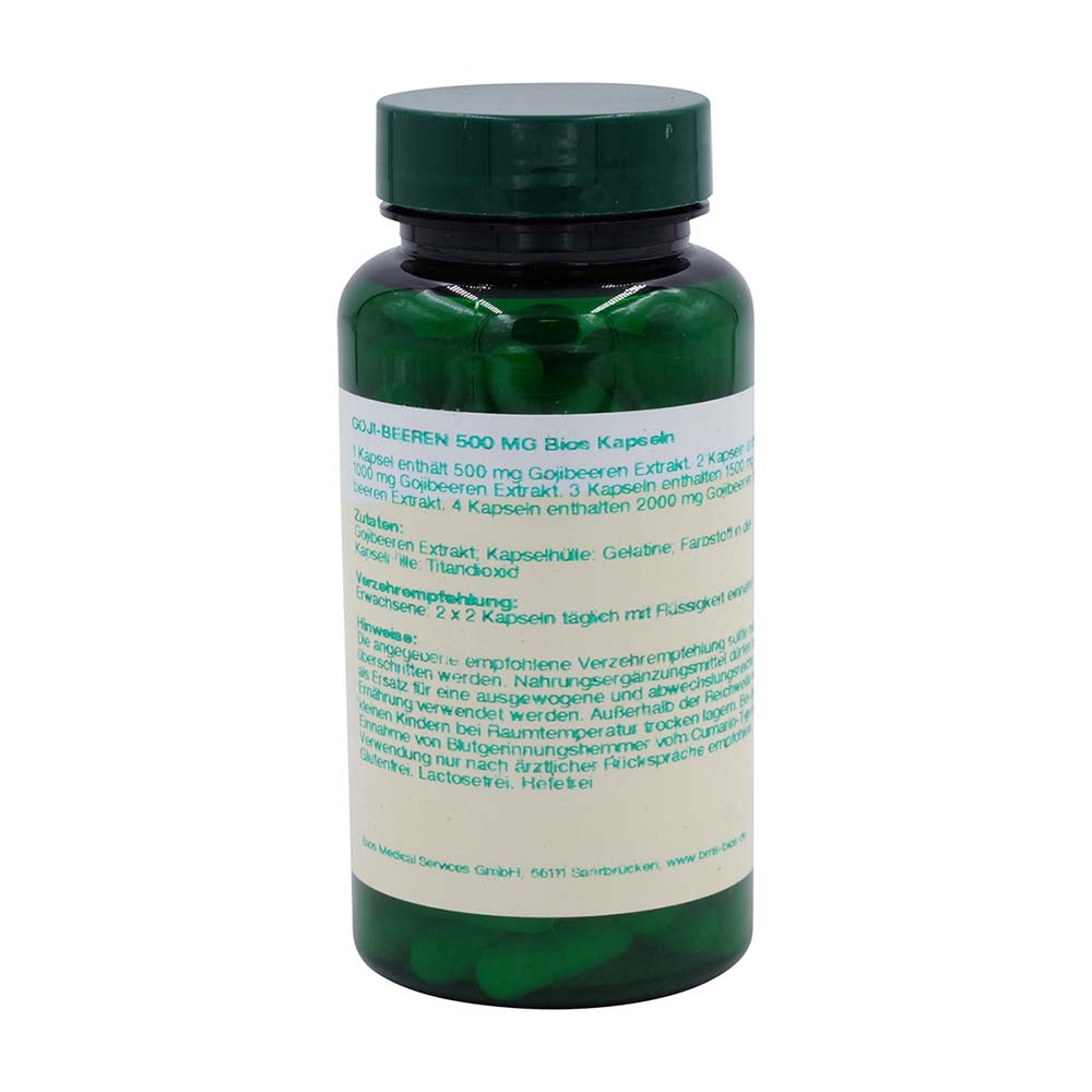 Bios Goji Beeren 500 mg Kapseln enthalten 500 mg eines Goji-Beeren Trockenextraktes in einer Hartgelatinekapsel. Die Chinesische Wolfsbeere, auch als Goji Beere bekannt, wird als Zierpflanze verwendet und ist Bestandteil der chinesischen Küche. In den Früchten finden sich Vitamin-C-Vorläufer, Vitamin A, Vitamin B1, B2, Zeaxanthin, Beta-Sitosterol, Polysaccharide, Aminosäuren und Peptide.