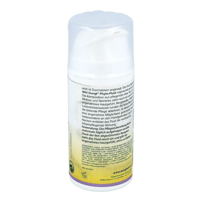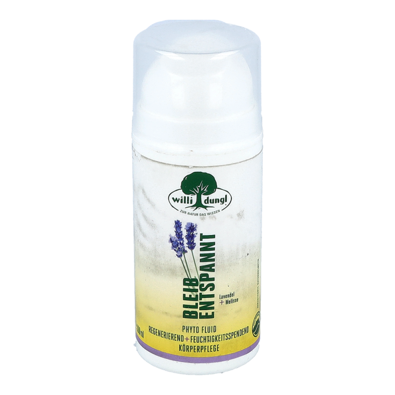 Jetzt ist Durchatmen angesagt: Das feuchtigkeitsspendende Willi Dungl ® BLEIB ENTSPANNT Phyto-Fluid regeneriert gestresste Haut angenehm und hilft so auch bei Hektik Ruhe zu bewahren. Die Komposition aus pflegender Aloe Vera mit Lavendel, Melisse und Steinklee zieht rasch ein und hinterlässt ein angenehmes Hautgefühl. Für all jene, die fettende Pflege ablehnen, ist dieses erfrischende Fluid eine Möglichkeit auch gestresste Haut zu regenerieren.