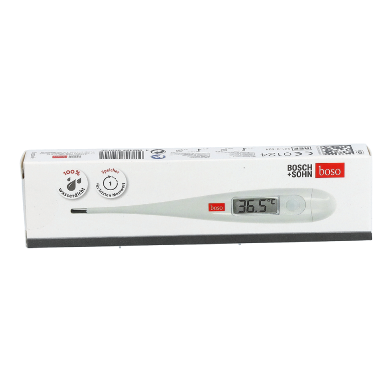 Basisthermometer für präzises Fiebermessen, Speicher für den letzten Messwert, 100% wasserdicht, 2 Jahre Qualitätsgarantie.