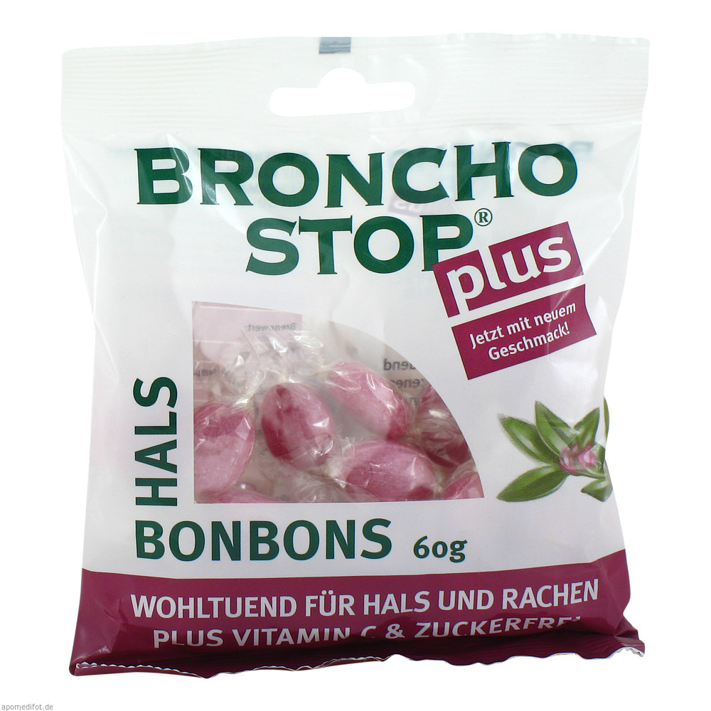 BRONCHOSTOP plus Vitamin C Halsbonbons enthalten eine bewährte Kombination von Menthol plus Vitamin C. Zuckerfrei und wohltuend für Hals und Rachen.