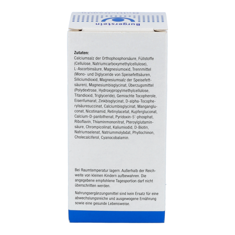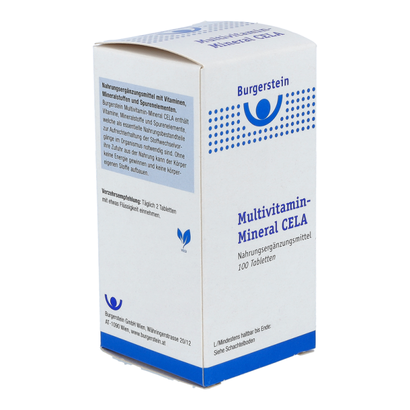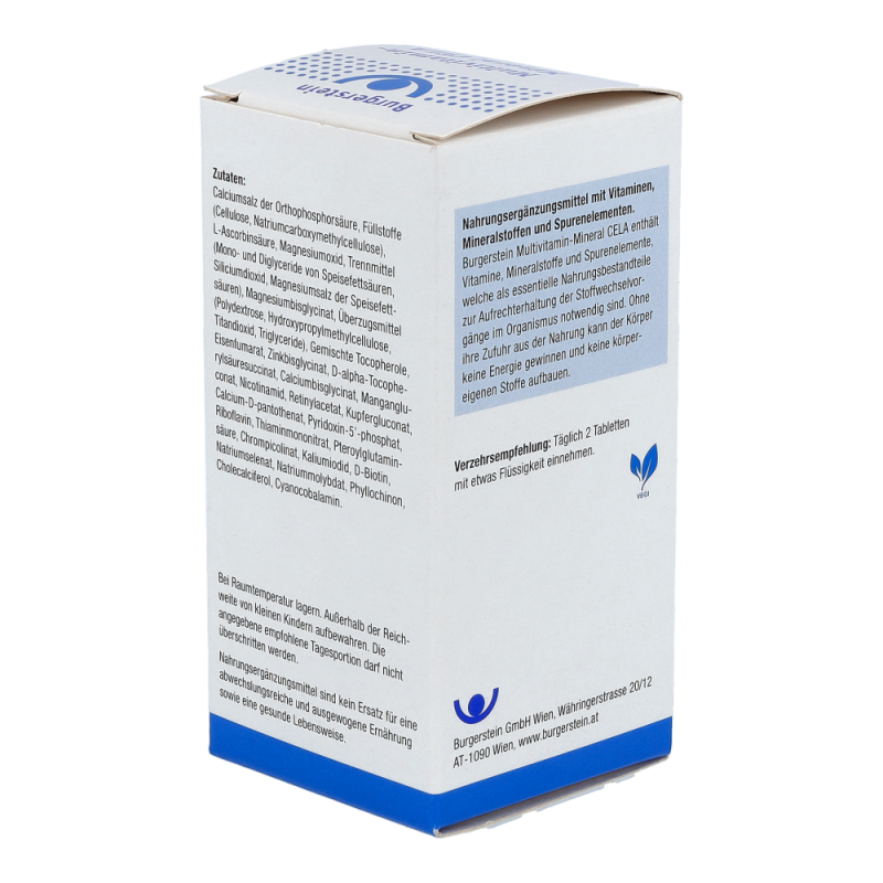 Burgerstein Cela Multivitamin Mineral Tabletten enthalten Vitamine, Mineralstoffe und Spurenelemente, welche als essentielle Nahrungsbestandteile zur Aufrechterhaltung der Stoffwechselvorgänge im Organismus notwendig sind. Ohne ihre Zufuhr aus der Nahrung kann der Körper keine Energie gewinnen und keine körpereigenen Stoffe aufbauen.