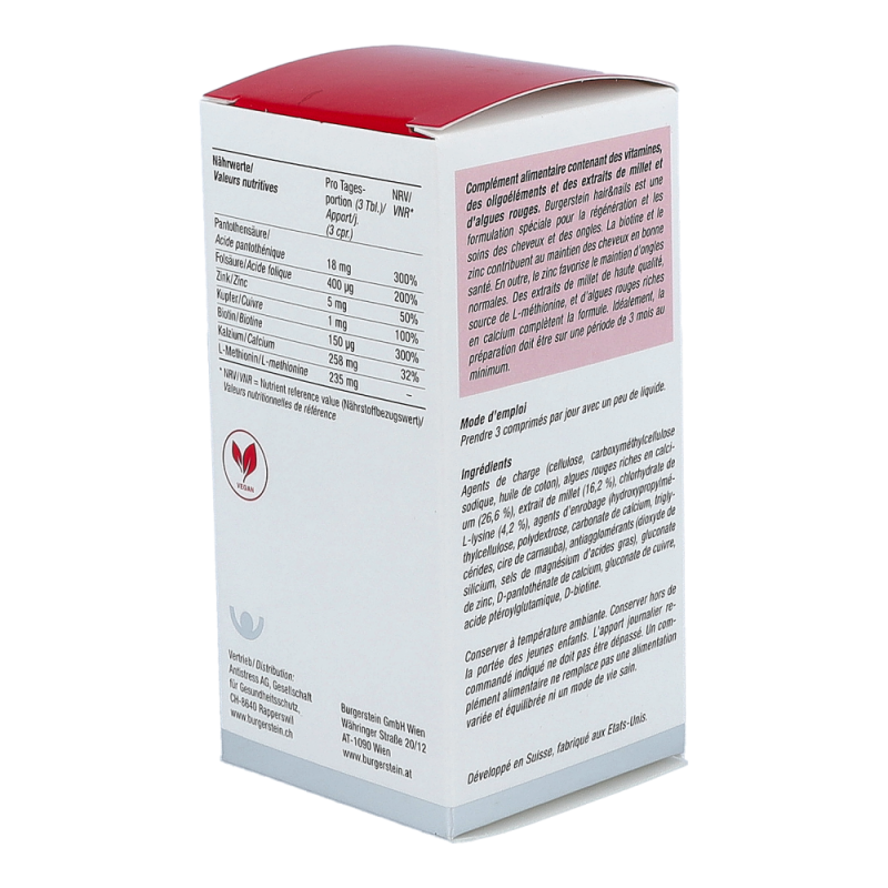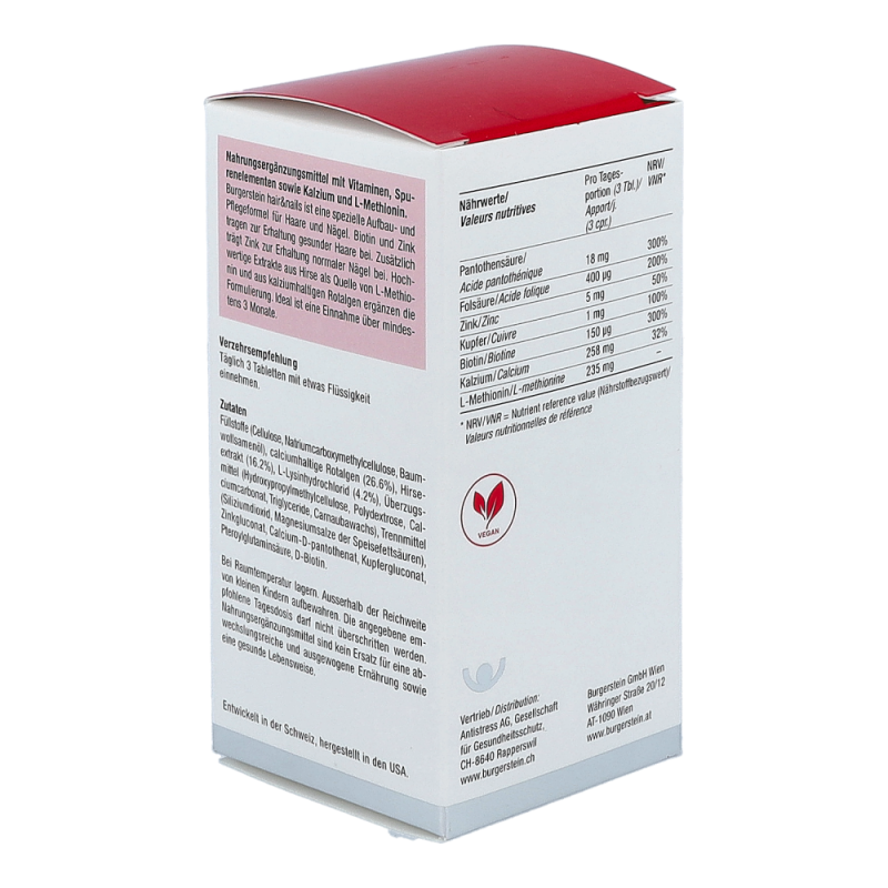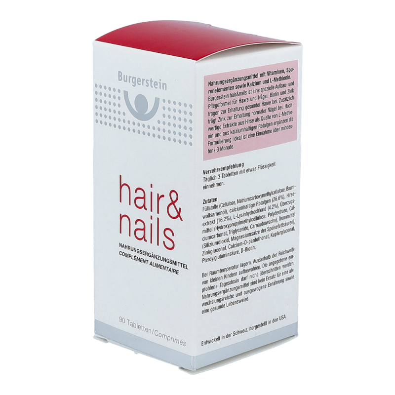 Burgerstein Tabletten Hair & Nails verleiht dem Haar Spannkraft und Lebendigkeit und fördert die Stärke und Widerstandskraft von Nägeln.
