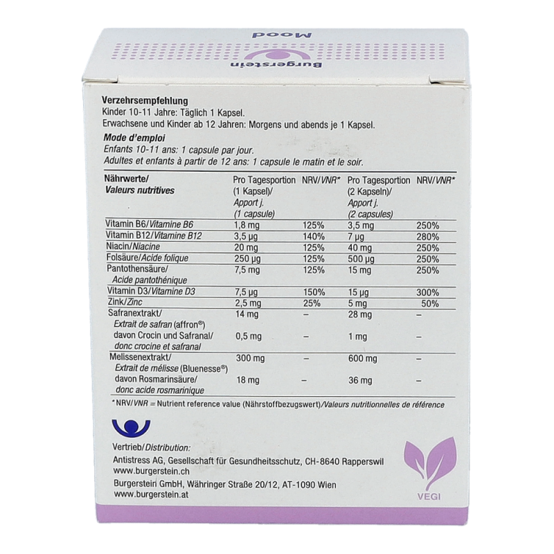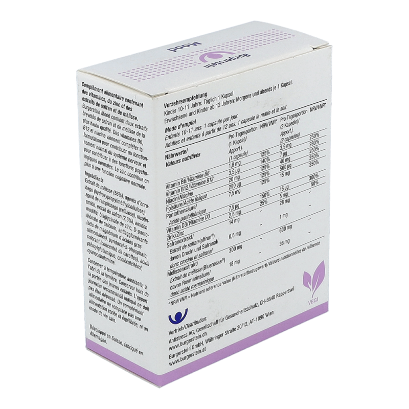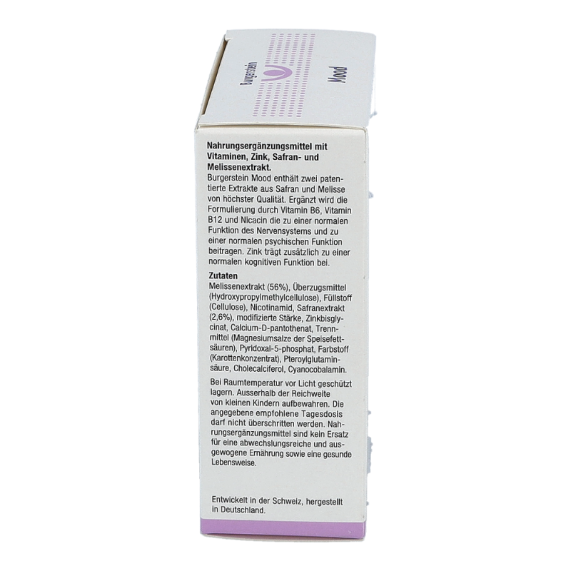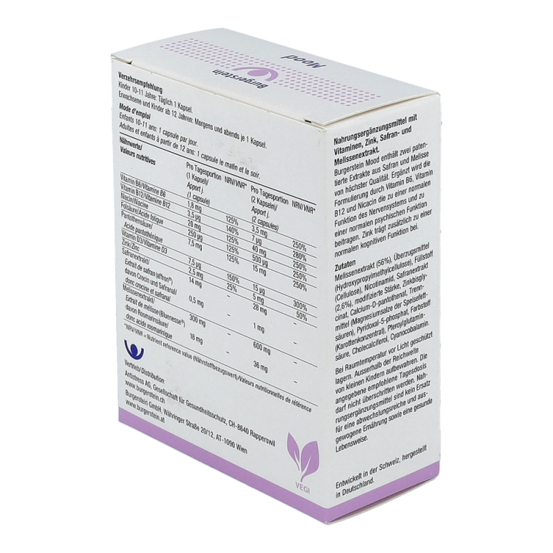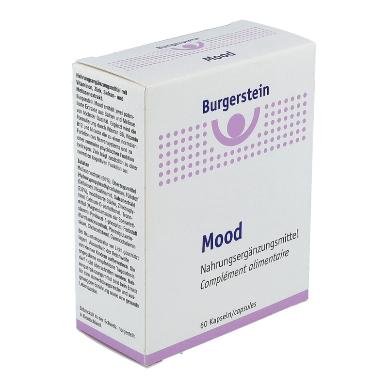 Burgerstein Mood enthält Safran- und Melissenextrakt aus kontrolliertem Anbau sowie ausgewählte Mikronährstoffe für ein positives Lebensgefühl und das innere Gleichgewicht. Fast jeder kennt dieses kleine Tief, aus dem man nicht wirklich herauskommt. Wenn die Motivation für alles fehlt, man nur noch funktioniert und sich am liebsten verkriechen möchte. In diesen Zeiten möchten wir Sie mit Burgerstein Mood unterstützen.