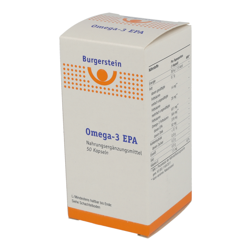 Burgerstein Omega-3 EPA ist dank dem hohen Gehalt an EPA (Eicosapentaensäure) speziell geeignet zur Regulation der Blutfettwerte und des Cholesterinstoffwechsels. EPA hilft zur Unterstützung der Herz-Kreislaufgesundheitund ist notwendig für den Aufbau und die Funktion der Zellmembran.