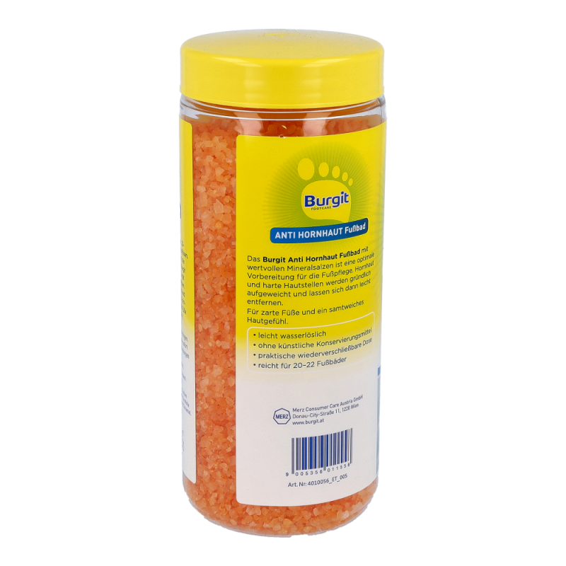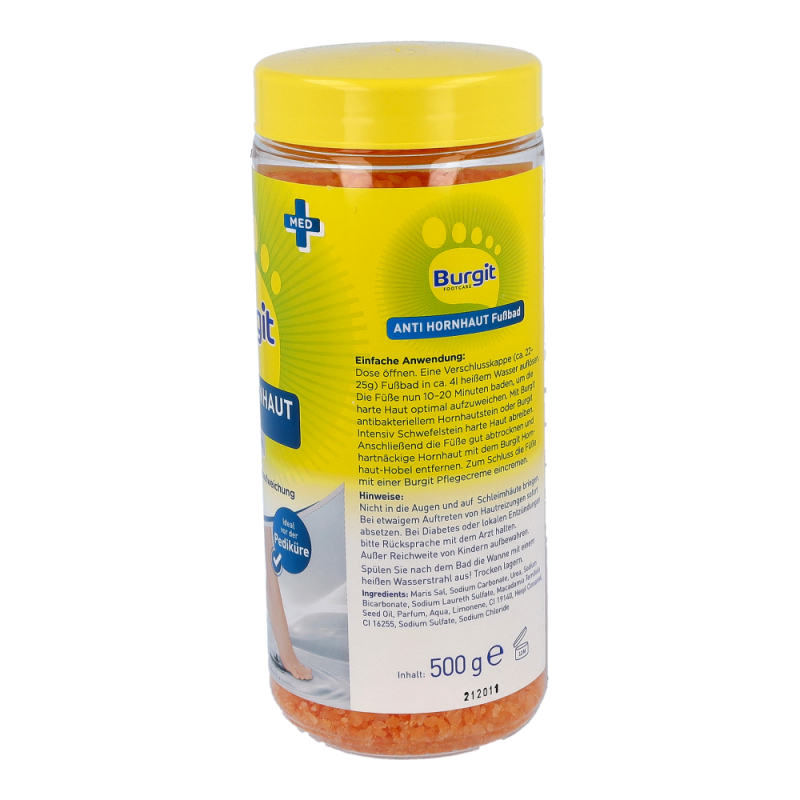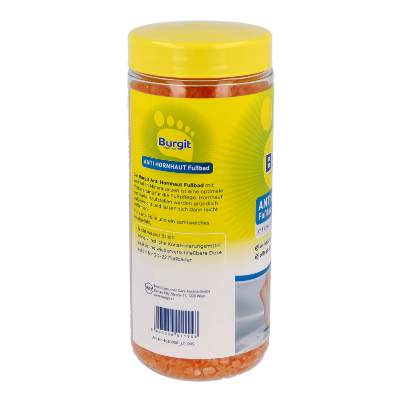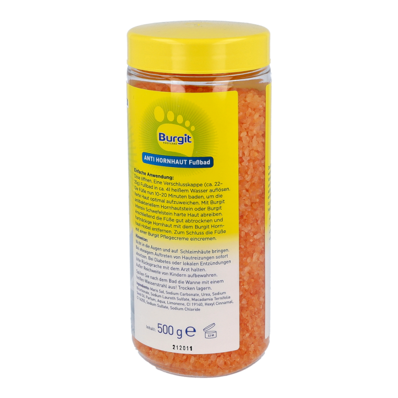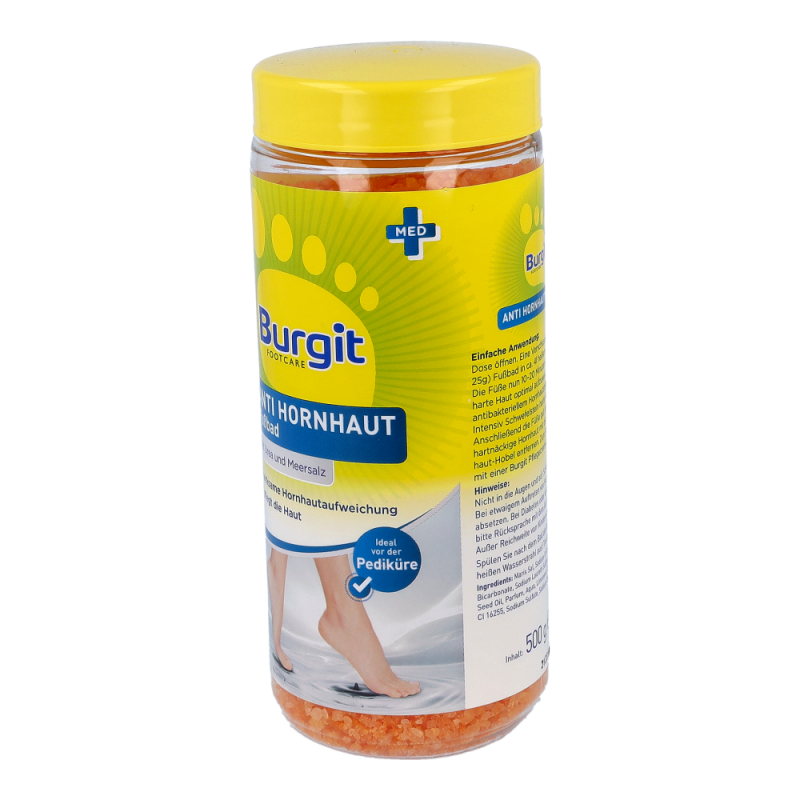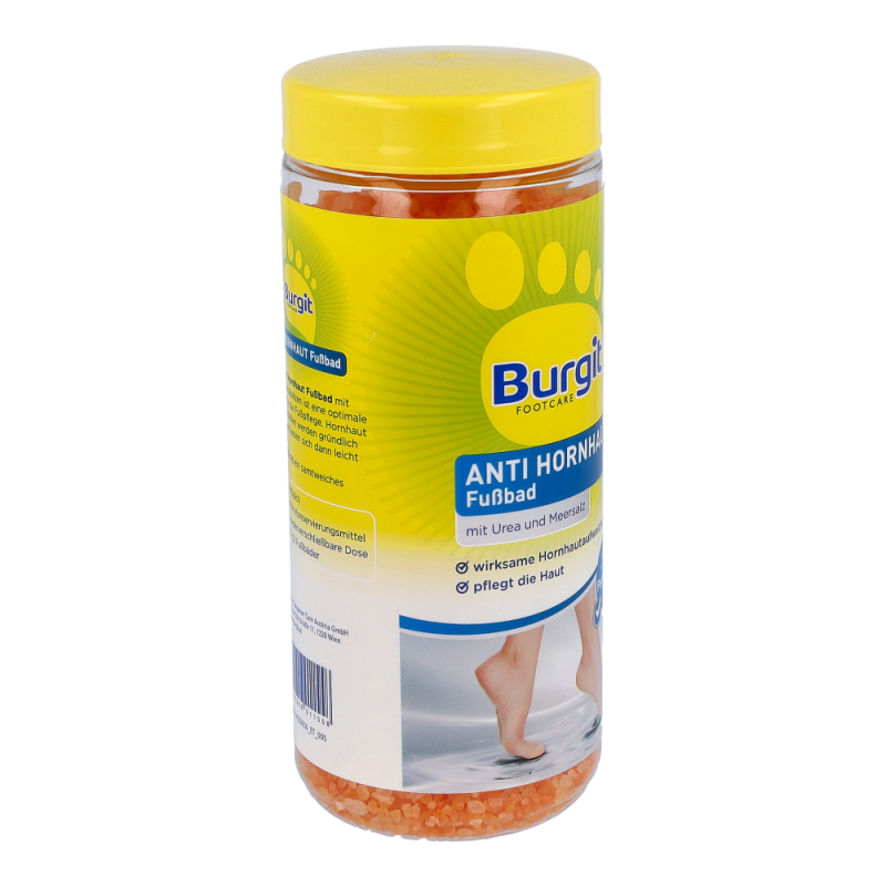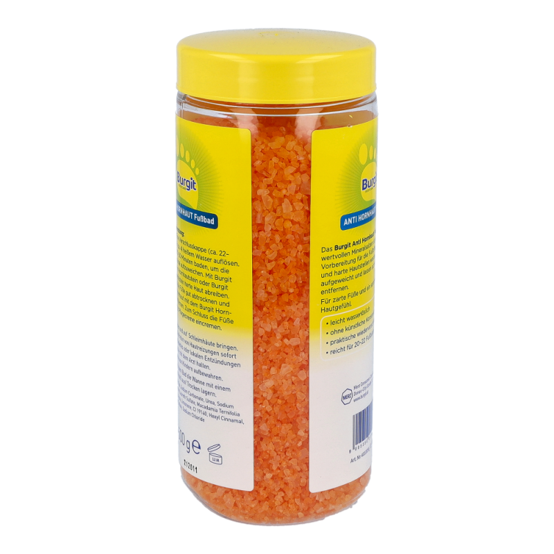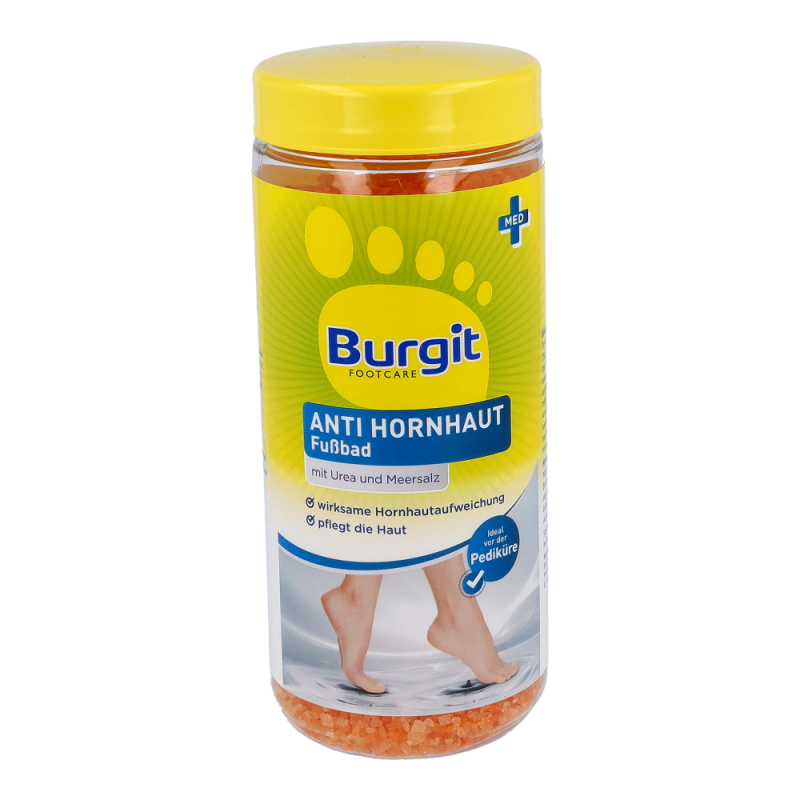 Burgit Anti Hornhaut Fußbad ist die optimale Vorbereitung für die Pediküre. Harte Haut und Hornhaut werden gründlich aufgeweicht und lassen sich durch Urea Perlen leicht entfernen. Zusätuzlich macht das enthaltene Macadamianussöl die Haut glatt und geschmeidig..