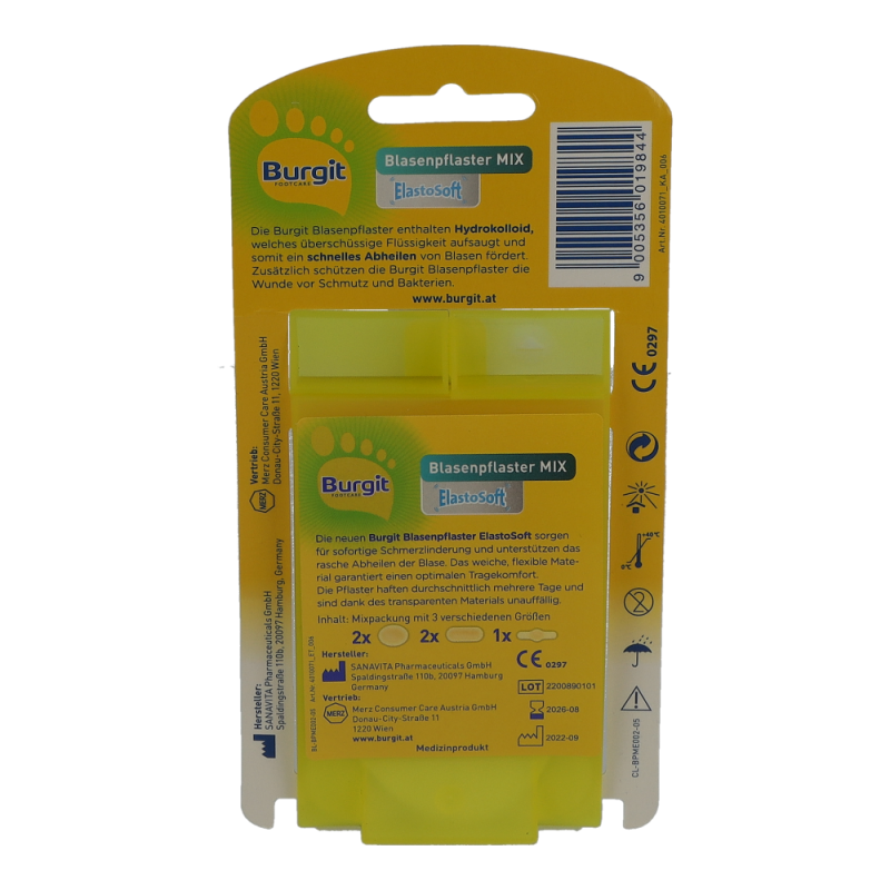 Burgit Blasenpflaster bestehen aus Hydrokolloid, welches überschüssige Flüssigkeit aufsaugt und somit ein schnelles Abheilen der Blase fördert. Zusätzlich schützen sie die Wunde vor Schmutz und Bakterien.