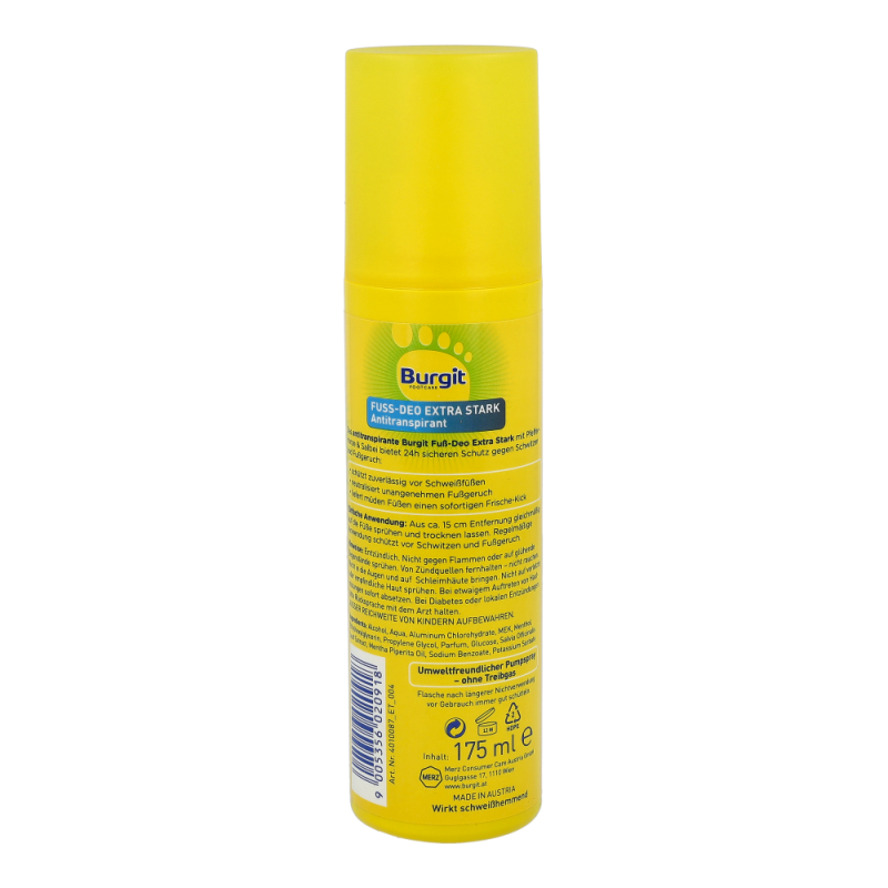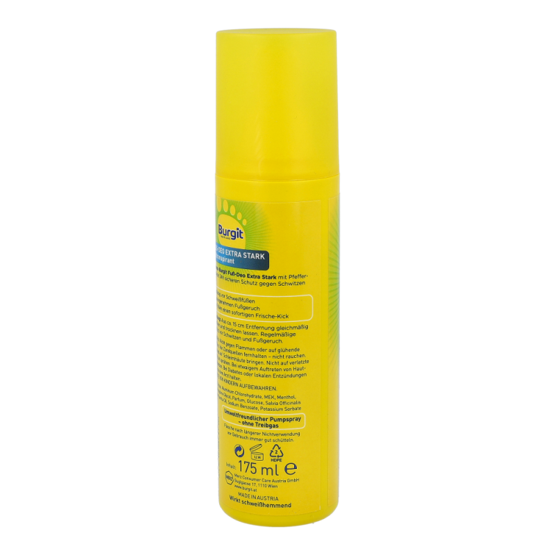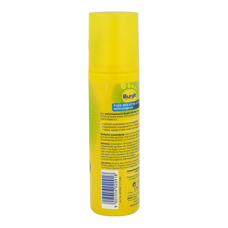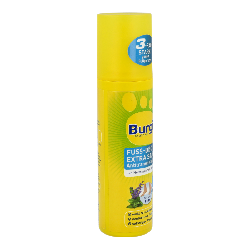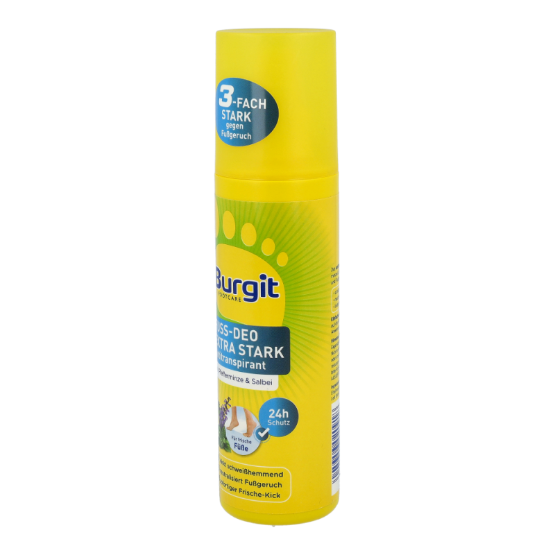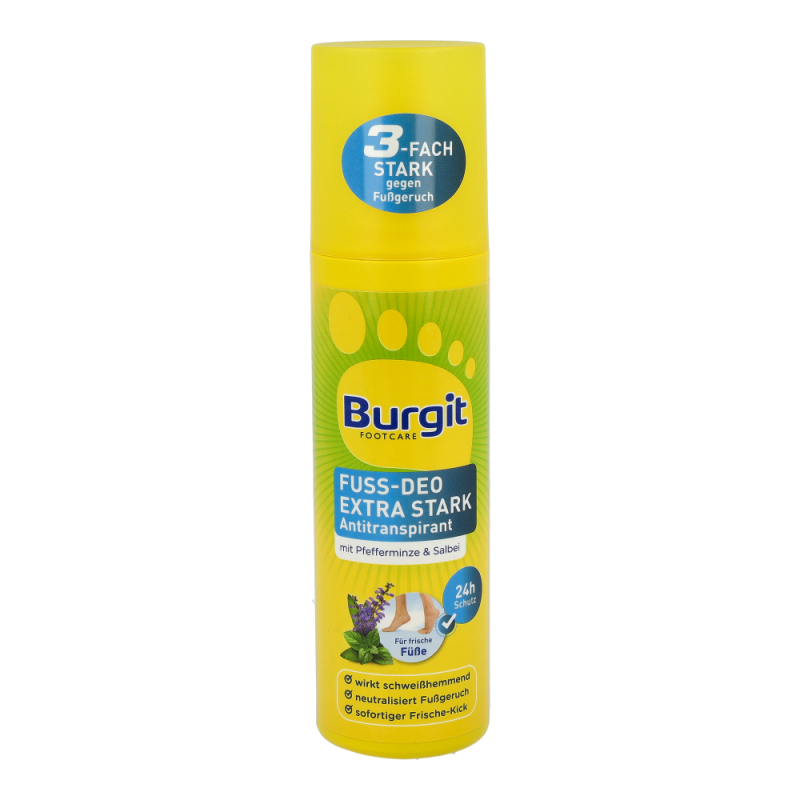 Burgit Fuß-Deo Antitranspirant mit praktischer wirktkühlend, schweißhemmend, und antibakteriell und ist somit die perfekte Hilfe gegen unangenehm riechende Schweißfüße.