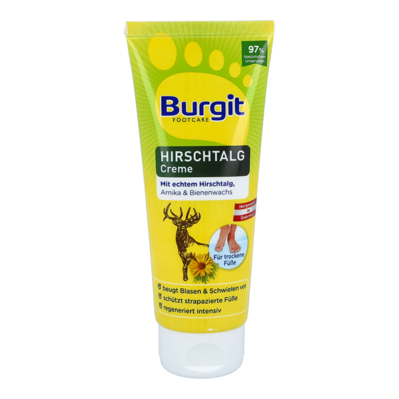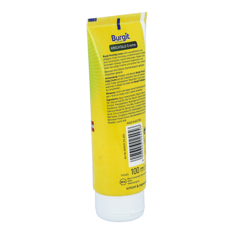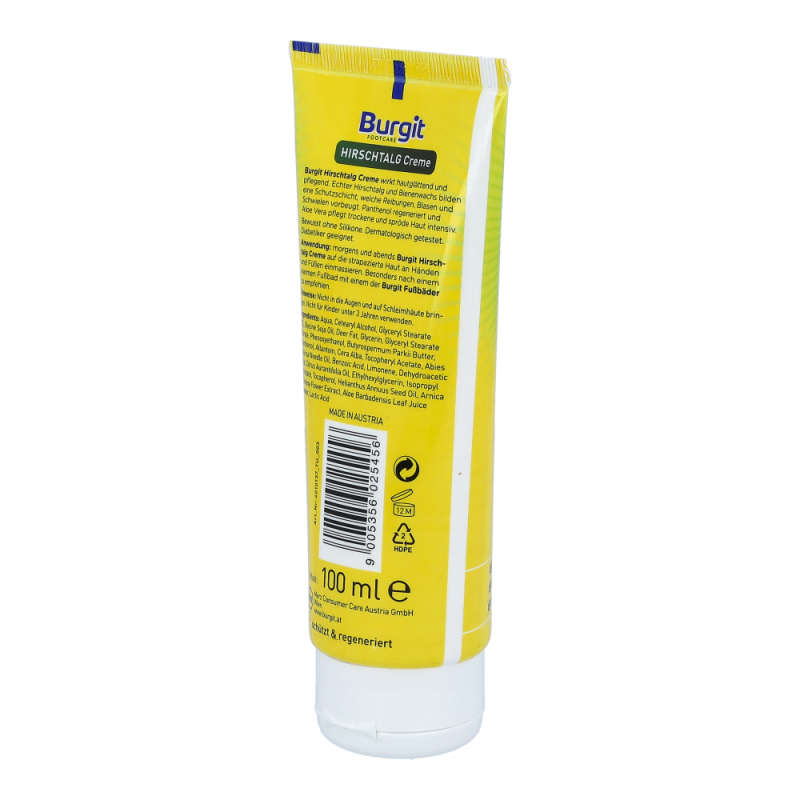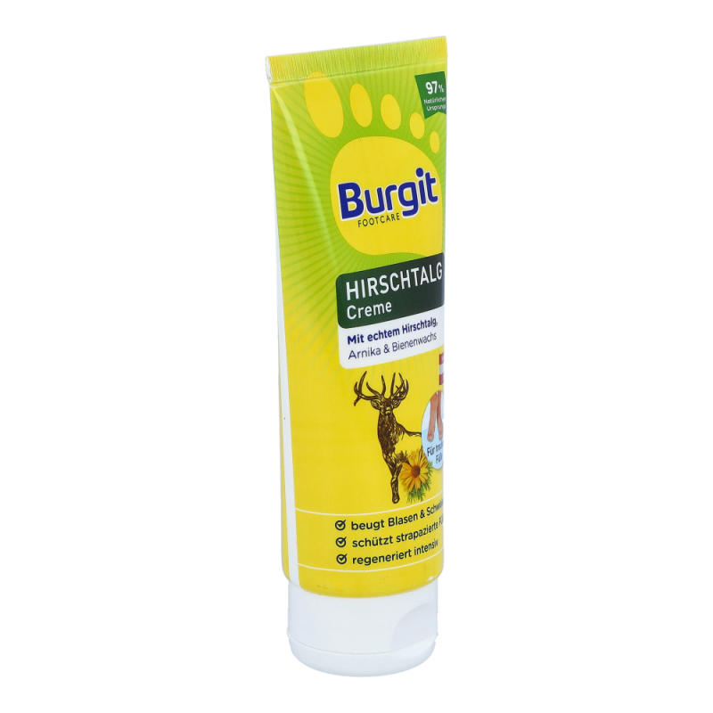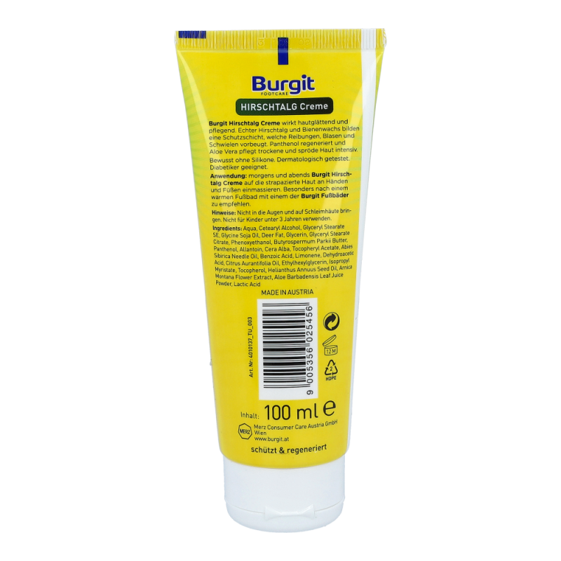 Echter Hirschtalg und Bienewachs bilden eine Schutzschicht, welche Reibungen, Blasen und Schwielen vorbeugt. Panthenol und Aloe Vera regeneriert trockene und spröde Haut intensiv