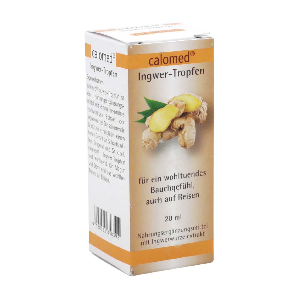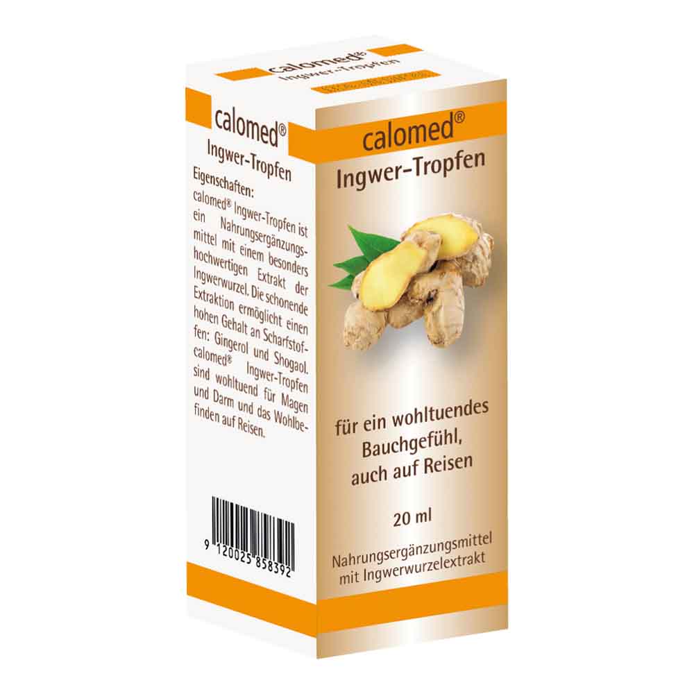 calomed Ingwer-Tropfen ist ein Nahrungsergänzungsmittel mit Ingwerwurzelextrakt, wohltuend für Magen und Darm und das Wohlbefinden auf Reisen – online bestellen > durch GRATIS Lieferung* bares Geld sparen!