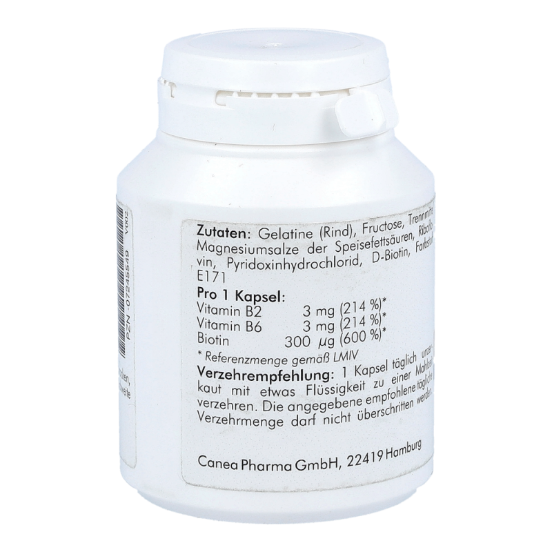 1 Kpasel täglich enthält: Biotin 300 myg, Vitamin B2 3 mg, Vitamin B6 3 mg.