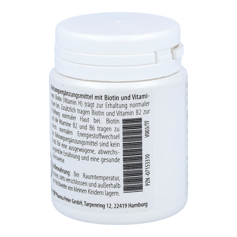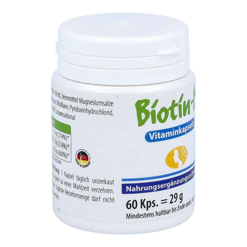Biotin – auch Vitamin H genannt – unterstützt den normalen Haarwuchs. Gemeinsam mit Vitamin B2 und B6 wird der Energiestoffwechsel angeregt und der Erhalt normaler Haut positiv beeinflusst.