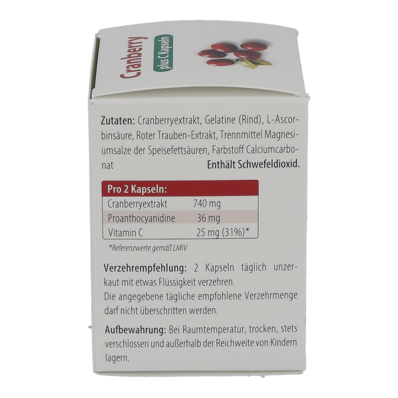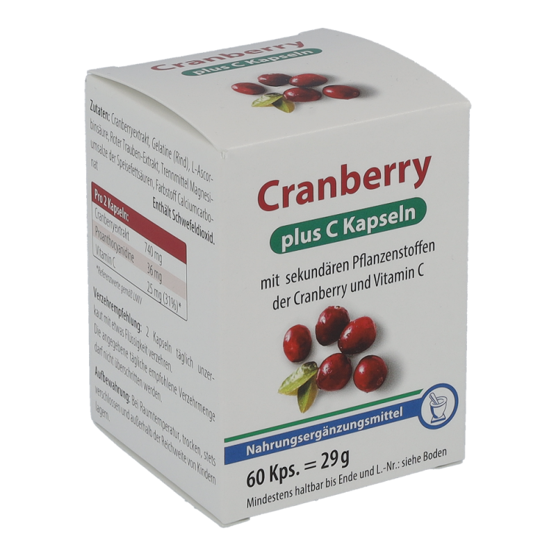 Je Kapsel: Cranberrypulverextrakt 400mg, Vitamin C 10mg.