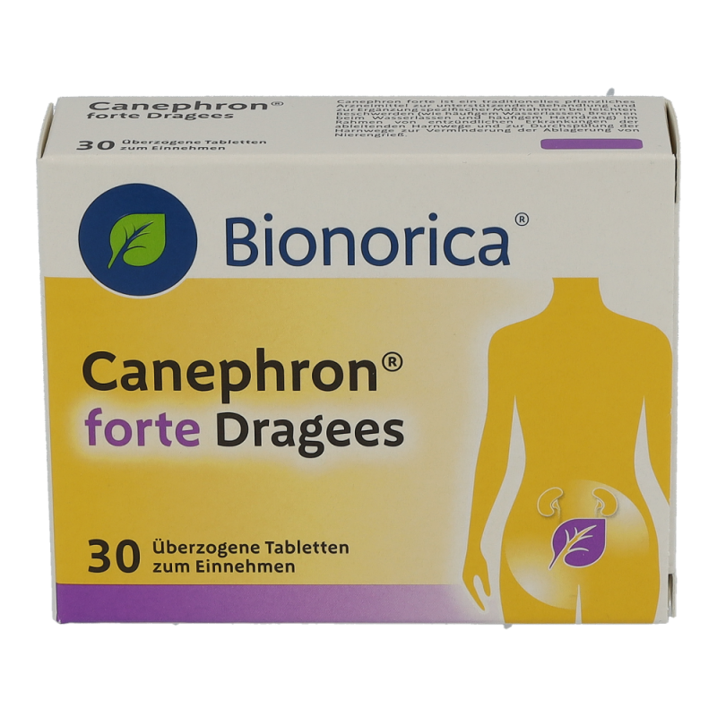 Canephron forte Dragees sind ein traditionelles pflanzliches Arzneimittel zur unterstützenden Behandlung und zur Ergänzung spezifischer Maßnahmen bei leichten Beschwerden im Rahmen von entzündlichen Erkrankungen der ableitenden Harnwege zur Durchspülung der Harnwege und zur Verminderung der Ablagerung von Nierengrieß.