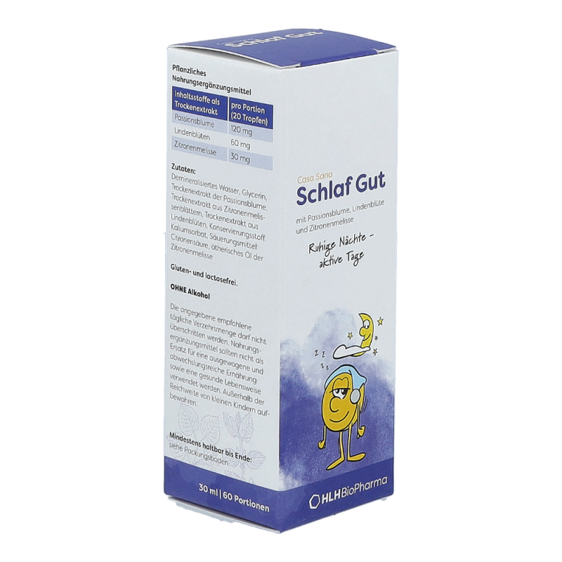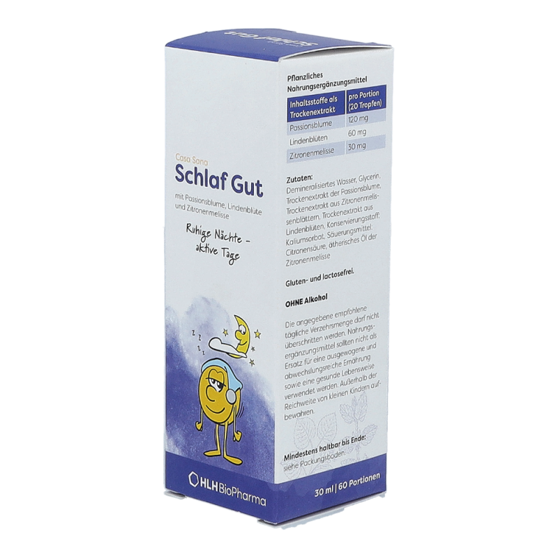 CASA SANA Schlaf gut – Nahrungsergänzungsmittel mit einer phytotherapeutischen Kombination aus Passionsblume, Lindenblüten und Zitronenmelissenblättern