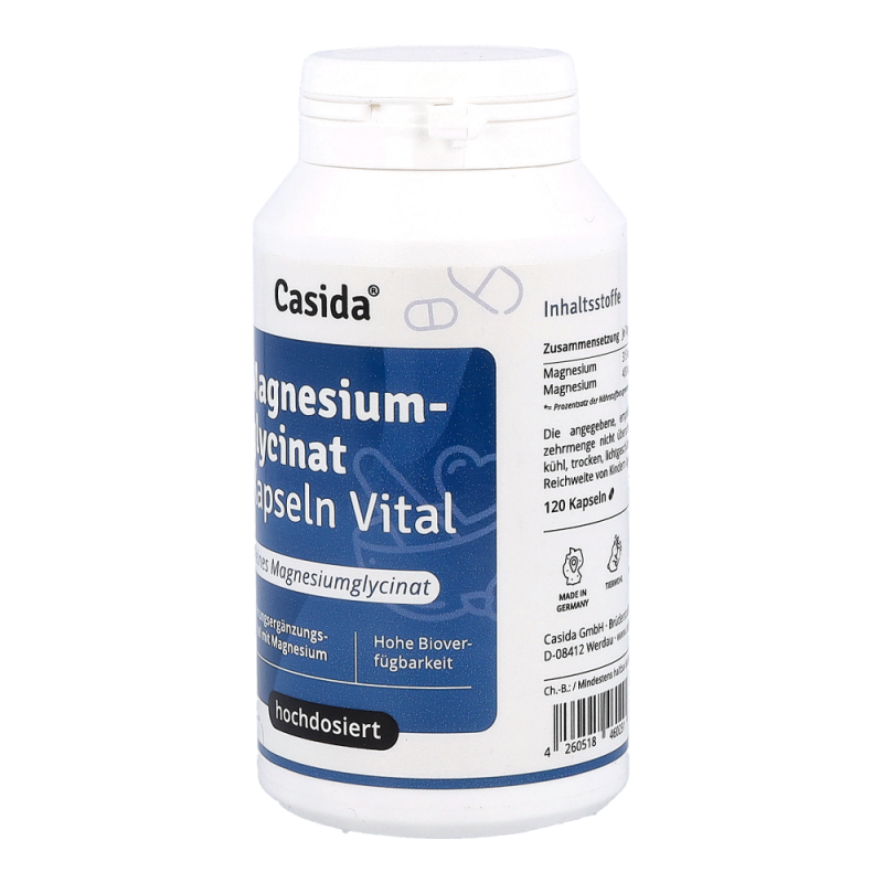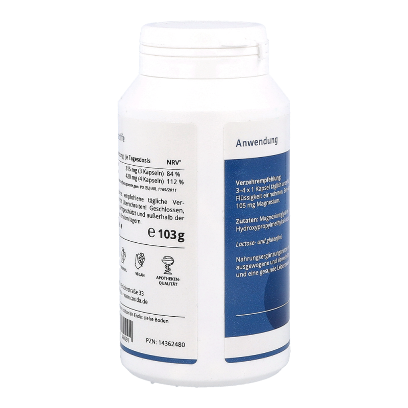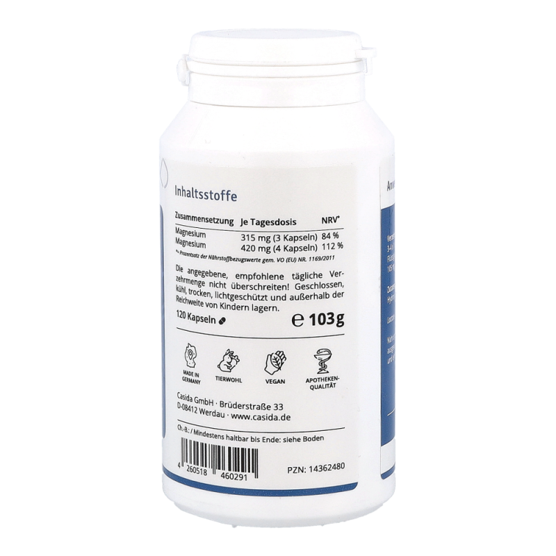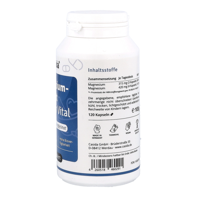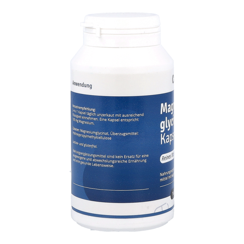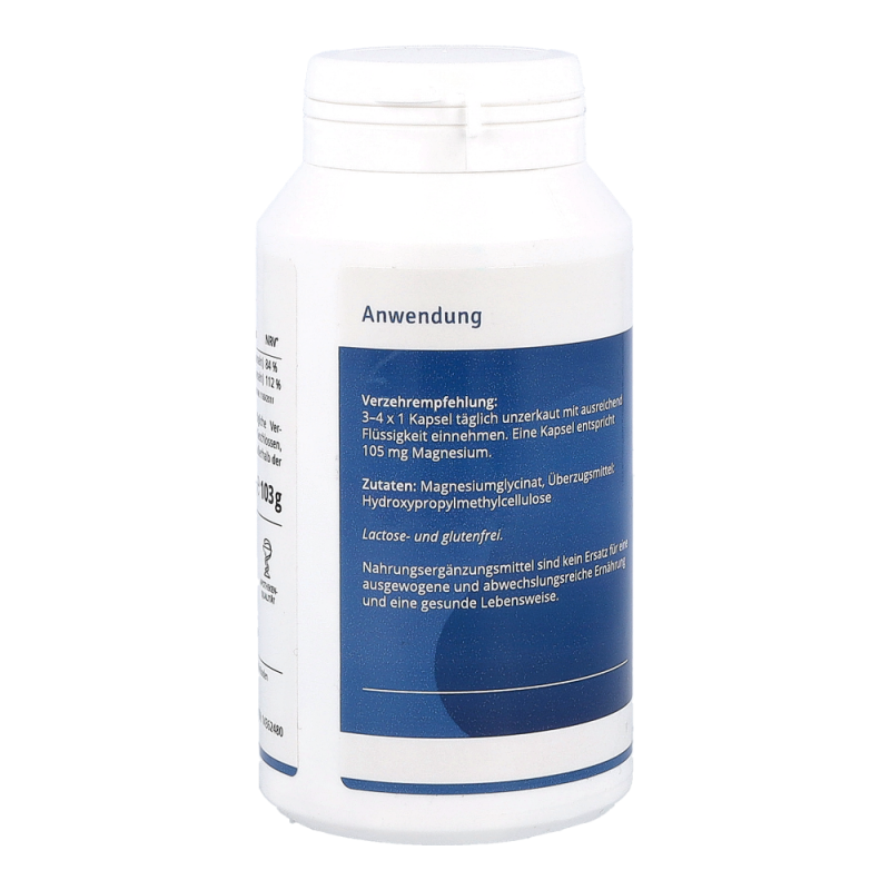 Magnesiumglycinat (Magnesiumbisglycinat), Überzugsmittel: Hydroxypropylmethylcellulose.