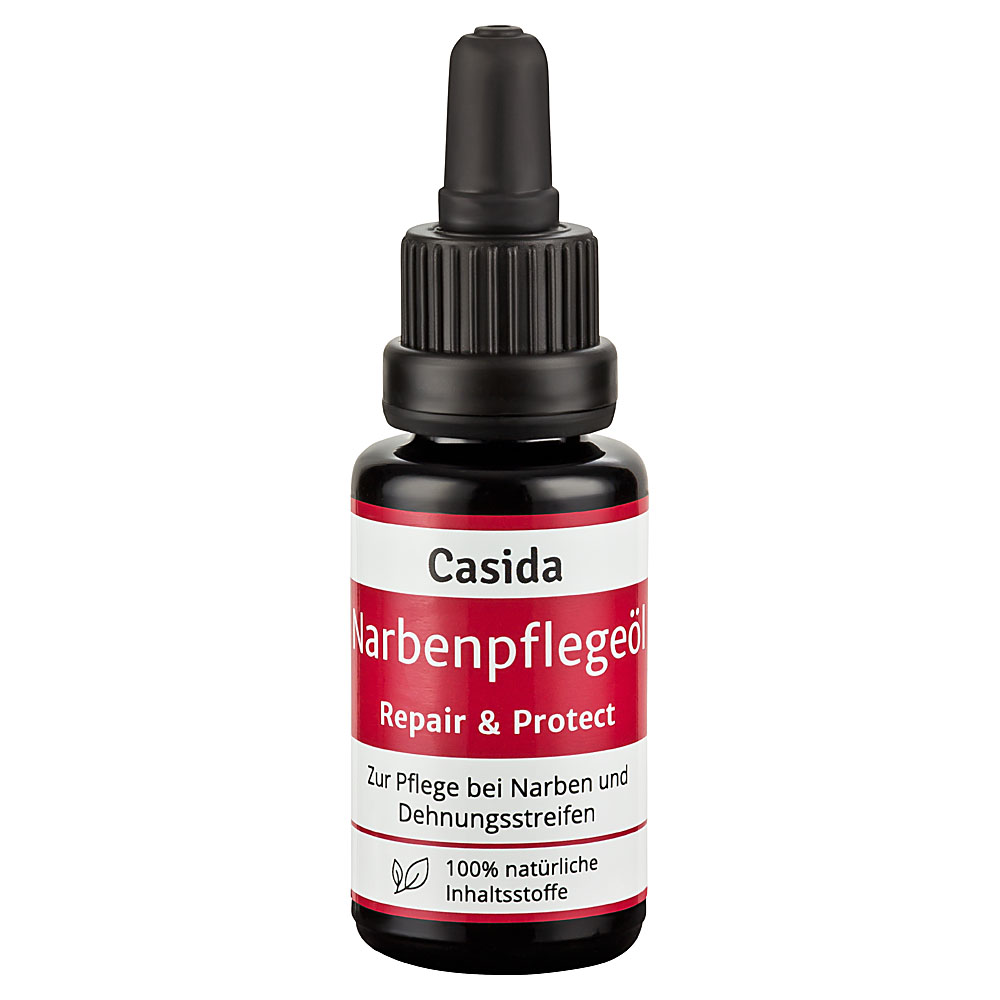 Casida Narbenpflegeöl Repair & Protect ist eine bewährte, pflanzliche Narbenpflege nach Verletzungen der Haut. Unschöne und störende Narben verblassen und Spannungsgefühl, Juckreiz und Verfärbungen werden gemildert. Gut verträglich und sanft zur Haut. Auch für Kinder (ab 6 Jahren) und empfindliche Haut geeignet.
