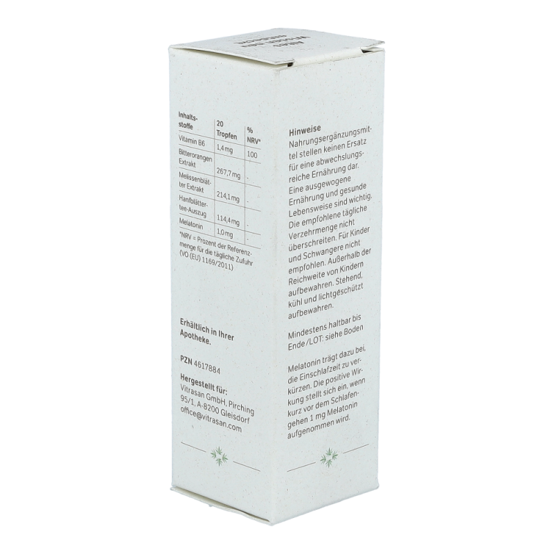 Mit den CBD Vital Hanf Schlaftropfen 30 ml kann die Schlafqualität verbessert werden. Hanf, Melisse- und Orangenblüte sowie Vitamin B6 und Melatonin sorgen für eine angenehme Nachtruhe. Jetzt online auf servusapotheke.at bestellen!