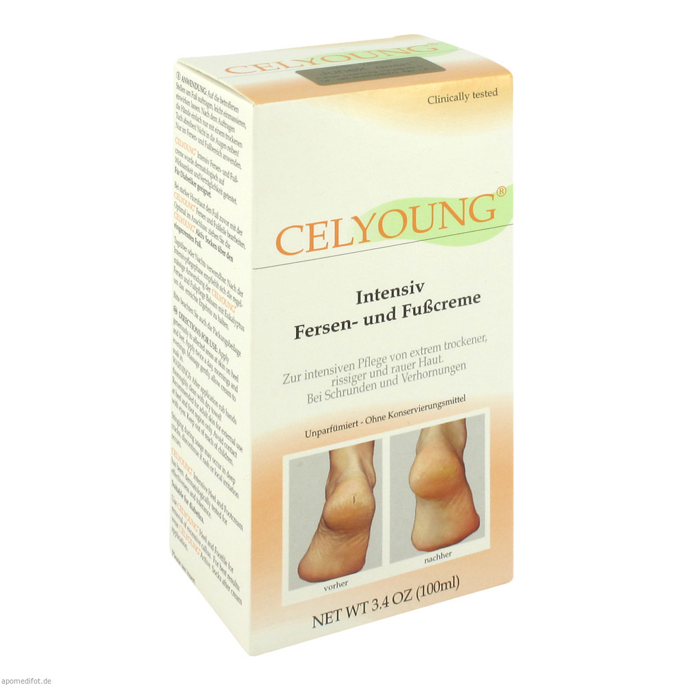 Deshalb die Füße regelmäßig verwöhnen und pflegen! Celyoung Intensiv Fersen- und Fußcreme eignet sich sowohl zur Pflege von sehr trockener Fußhaut als auch zur Intensiv-Behandlung von gerissenen Fersen und Schrunden.