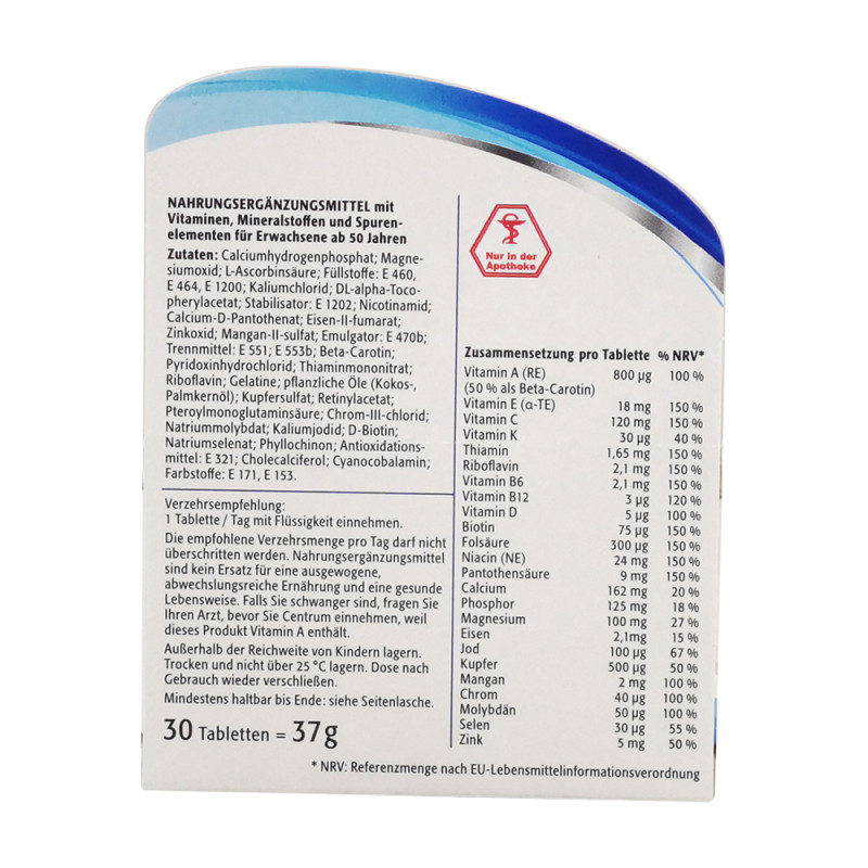 Centrum Generation 50+ Tabletten 30 Stk. enthalten sorgfältig aufeinander abgestimmte Vitamine, Mineralstoffe, Spurenelemente und das für gutes Sehen wichtige Lutein. Diese Nährstoffe unterstützen den Funktionsablauf unseres Körpers und sind lebensnotwendig. Jetzt bestellen!