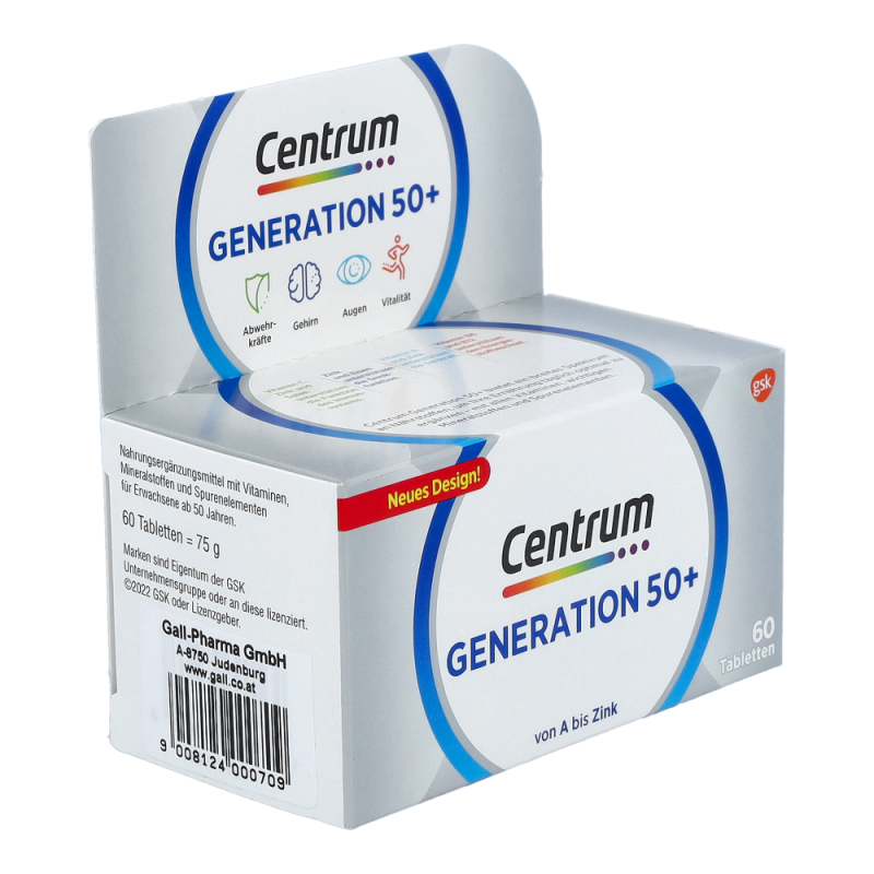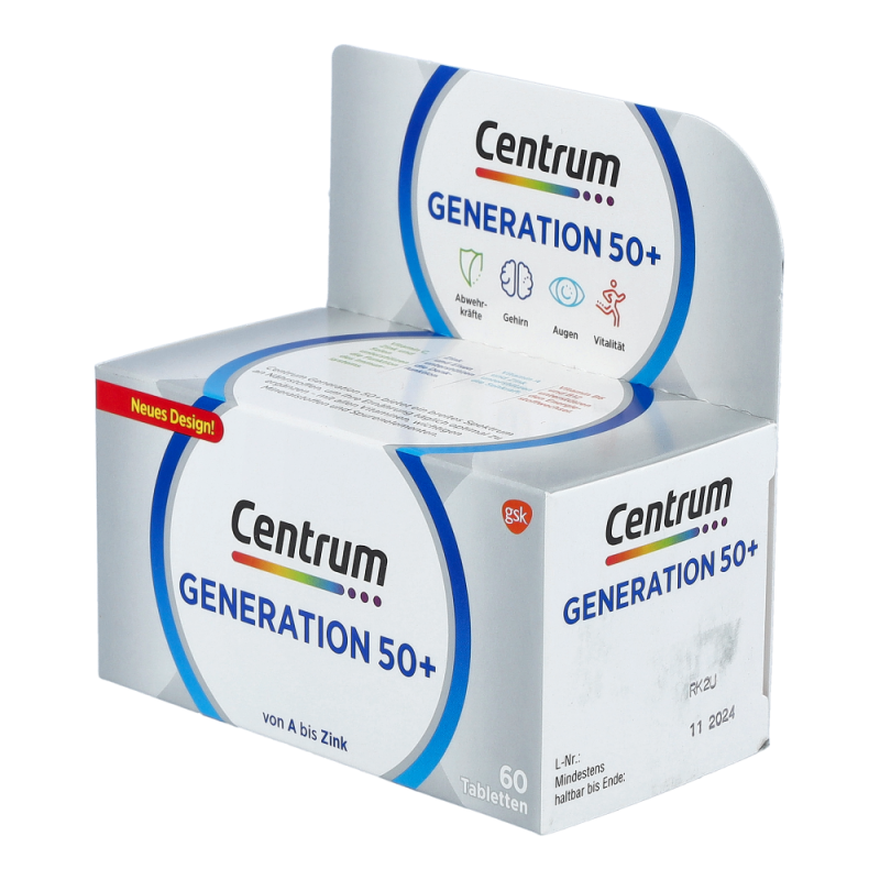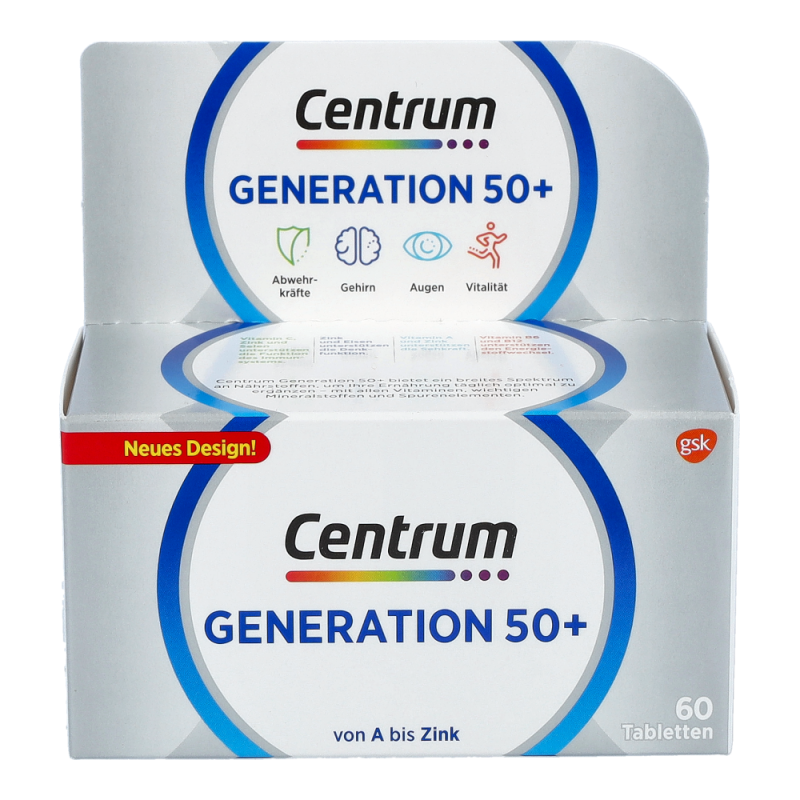 Centrum Capletten Generation 50+ sind für den Erhalt des Wohlbefindens und der Leistungsfähigkeit besonders wichtig. Nur eine Caplette trägt zur Deckung des Tagesbedarfs an allen wichtigen Vitaminen, Mineralstoffen und Spurenelementen bei.