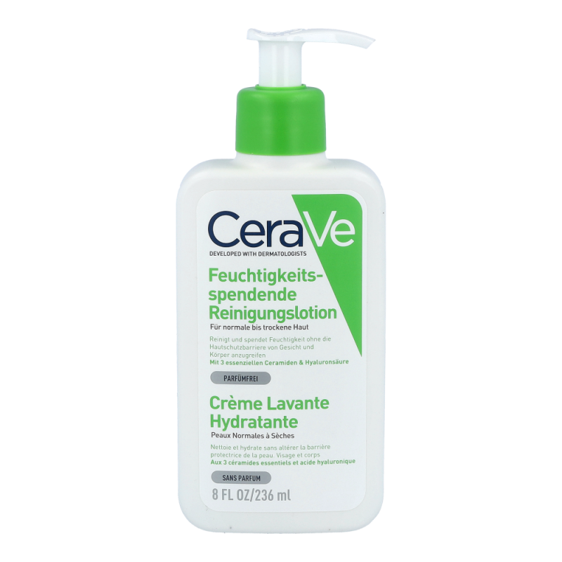 Reinigt effektiv, spendet Feuchtigkeit und trägt zur Wiederherstellung der schützenden Hautbarriere bei. Diese nicht schäumende Lotion entfernt sanft Schmutz und Öl und erhöht die Hautfeuchtigkeit nach nur einer Anwendung. Die feuchtigkeitsspendende Reinigungslotion eignet sich für normale bis trockene Haut.