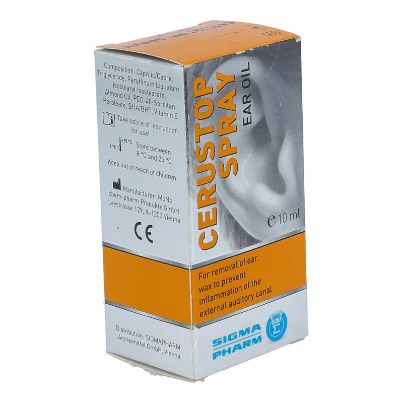 Zur Entfernung von überschüssigem oder verhärtetem Ohrenschmalz tropfen Sie – mit leicht zur Seite geneigtem Kopf – etwa eine halbe Pipette körperwarme CERUSTOP-Ohrenöl in den äußeren Gehörgang. Um ein Herausrinnen des Ohrenöles zu verhindern, verschließen Sie das Ohr mit einem kleinen Wattebausch, wobei der Bausch nur locker eingelegt und niemals in den Gehörgang gepresst werden darf. Nach ca. 10 Minuten Einwirkzeit spülen Sie das Ohr sanft mit warmem Wasser – wenn möglich mit der Handbrause.