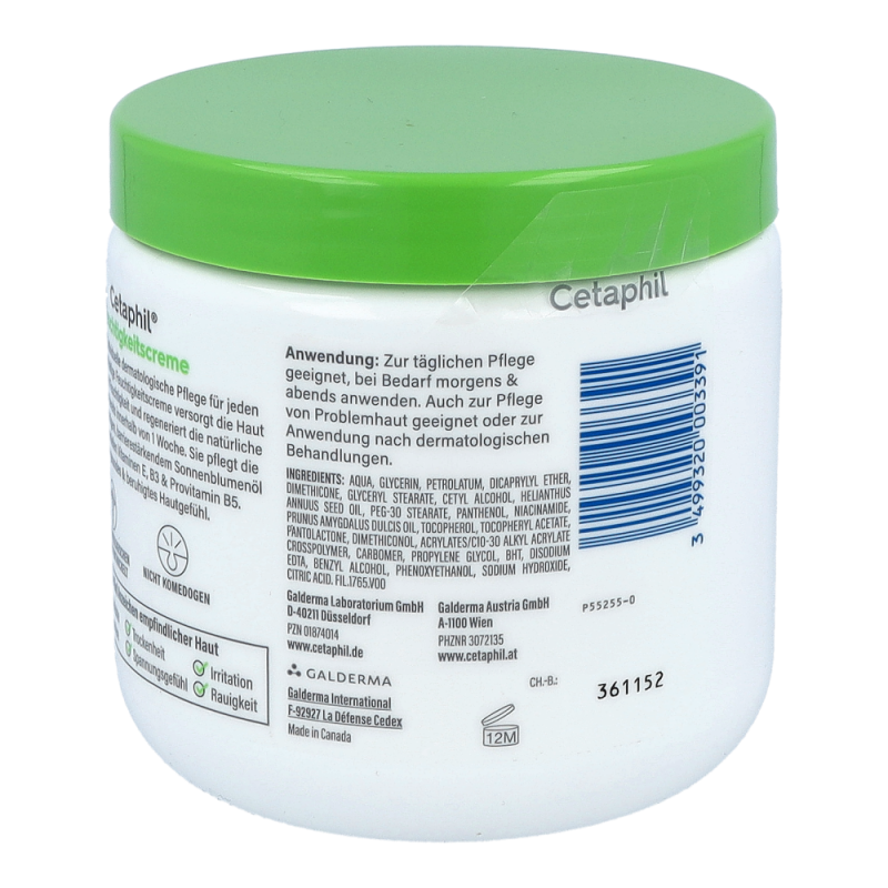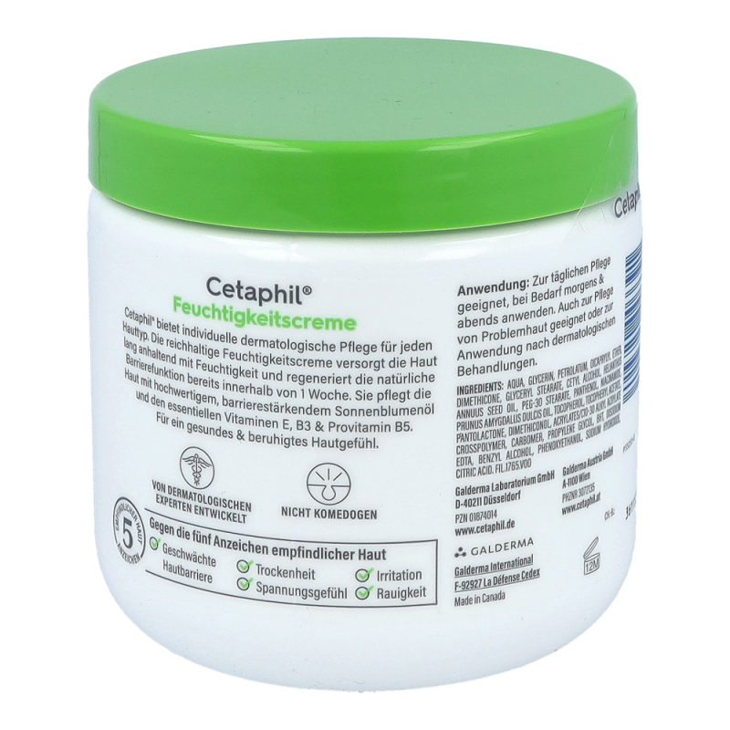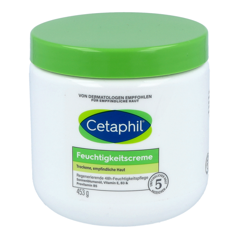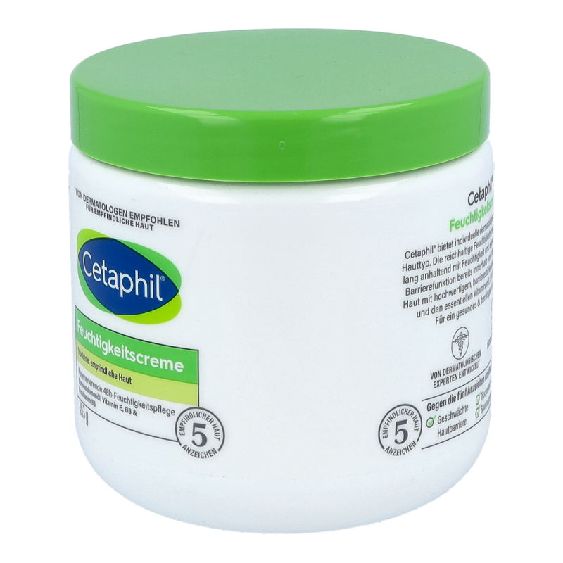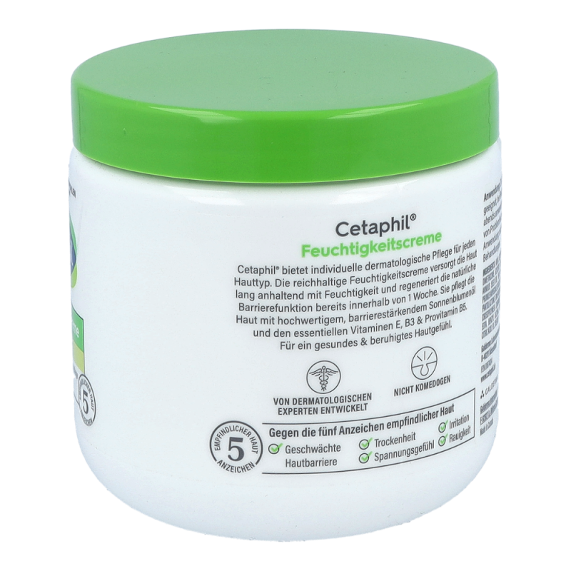 Bei sehr trockener und irritierter Haut ist die Hautschutzbarriere meist nicht mehr intakt, wodurch viel Feuchtigkeit verloren geht. Daher brauchen Betroffene eine Reinigung, welche nicht zusätzlich austrocknet sowie eine Pflege, welche dabei hilft, die natürliche Feuchtigkeit wieder herzustellen. Cetaphil Feuchtigkeitscreme mit Mandelöl versorgt trockene bis sehr trockene Haut mit Feuchtigkeit und schützt sie. Dadurch ist dies eine perfekte Pflege für Zonen, die besondere Aufmerksamkeit verlangen wie Hände, Ellbogen und Füsse. Sie enthält besondere Wirkstoffe, welche die Haut sanft und geschmeidig machen, wobei spezielle Feuchtehaltfaktoren die Feuchtigkeit in der Haut binden und auf diese Art ein Austrocknen verhindern.